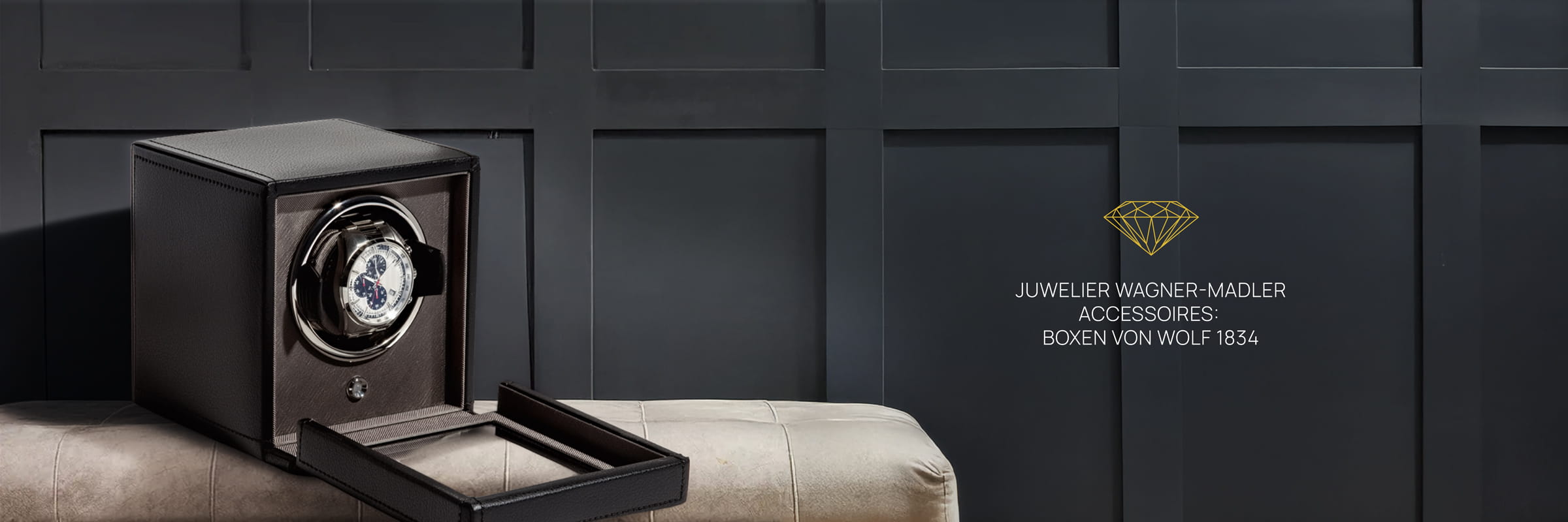 Entdecken Sie bei Juwelier Wagner-Madler in Mainz die erstklassigen Aufbewahrungslösungen von Wolf 1834, die speziell dafür entwickelt wurden, Ihre wertvollsten Uhren und Schmuckstücke sicher und stilvoll zu schützen. Unsere sorgfältig ausgewählte Kollektion umfasst elegante Uhrenboxen, die nicht nur funktional, sondern auch ein ästhetischer Blickfang sind. Jede Box ist gefertigt, um Ihre Zeitmesser vor Staub und Beschädigungen zu schützen, während sie gleichzeitig einen würdigen Präsentationsrahmen bieten.