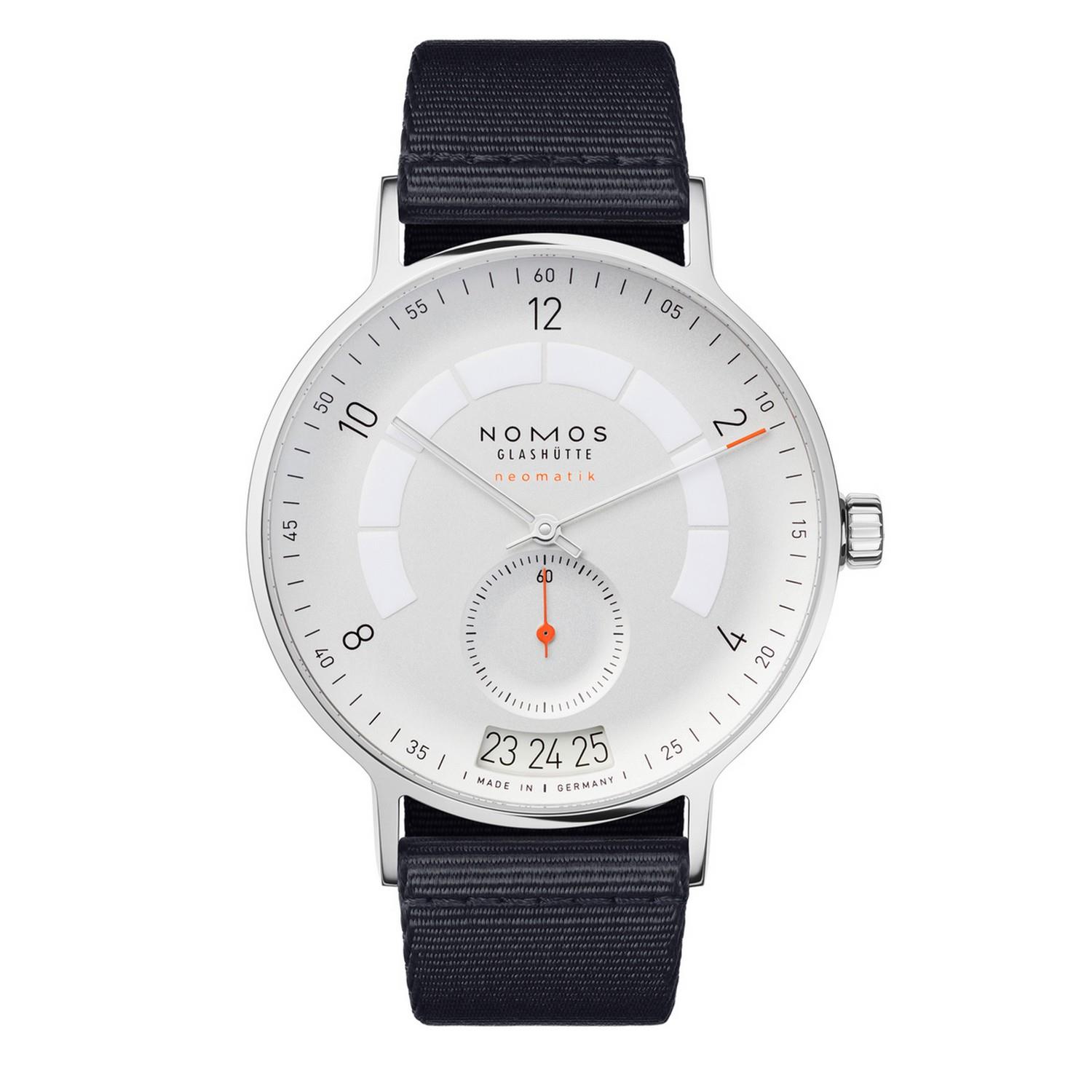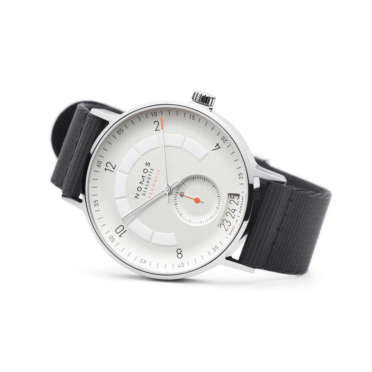 Man braucht keinen Führerschein für sie, nur freie Sicht, dann zeigt Autobahn ihre entschiedene Form und, durch den Saphirglasboden, eine Neuheit: das von Hand und einer Prise Hightech gefertigte neomatik-Datumskaliber. Mit weiß versilbertem Blatt ist diese Uhr dem klassischen NOMOS-Spektrum am nächsten. Und doch eine Spur anders.
