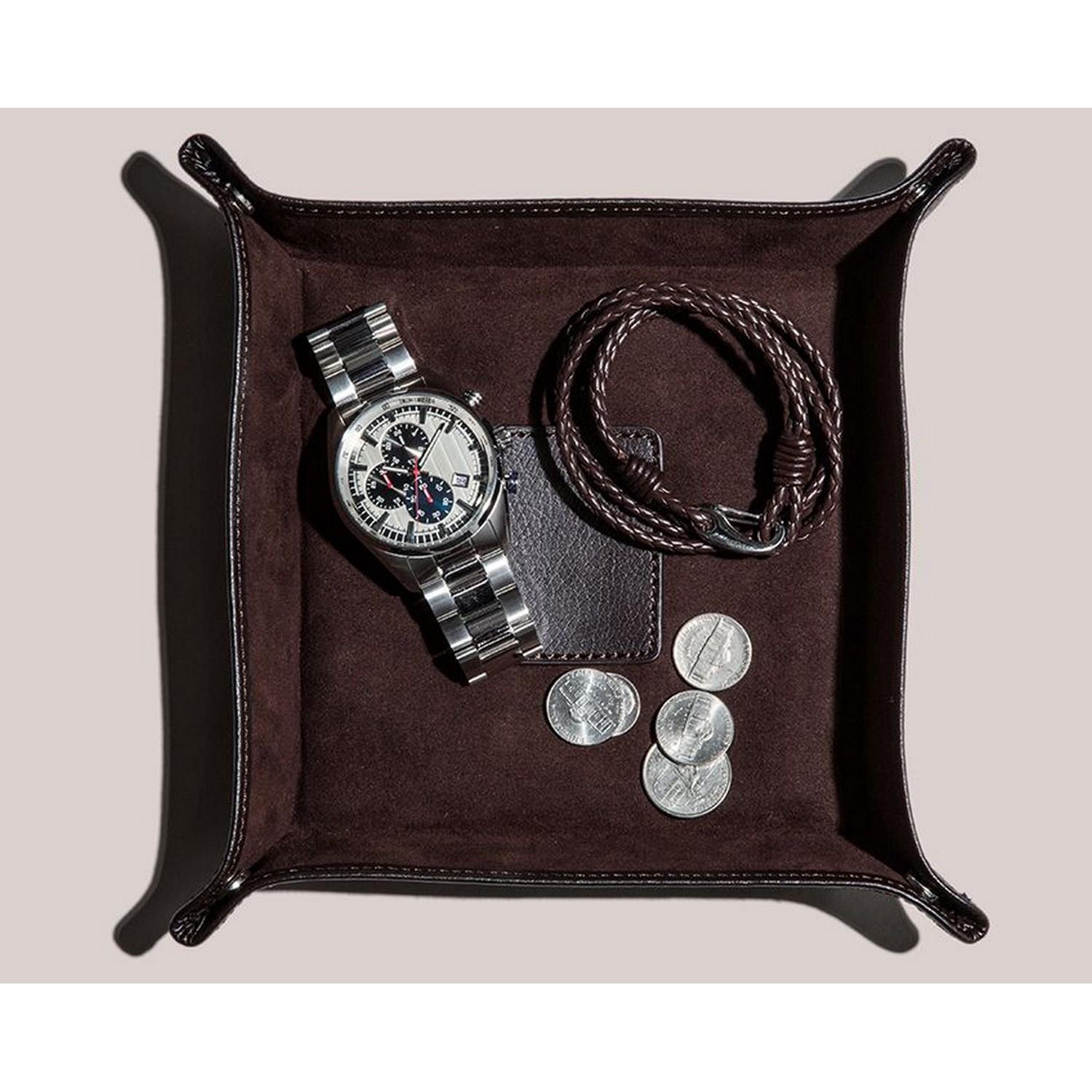 Blake ist stilvoll und klassisch und wird durch genarbtes Leder, Chrom und kräftige Akzente zum Leben erweckt. Ob auf Reisen oder zu Hause, das stilvolle Blake-Münztablett aus Leder bewahrt Ihre wichtigsten Utensilien an einem Ort auf. Mit Ultrasuede-Futter und Druckknopfverschluss.