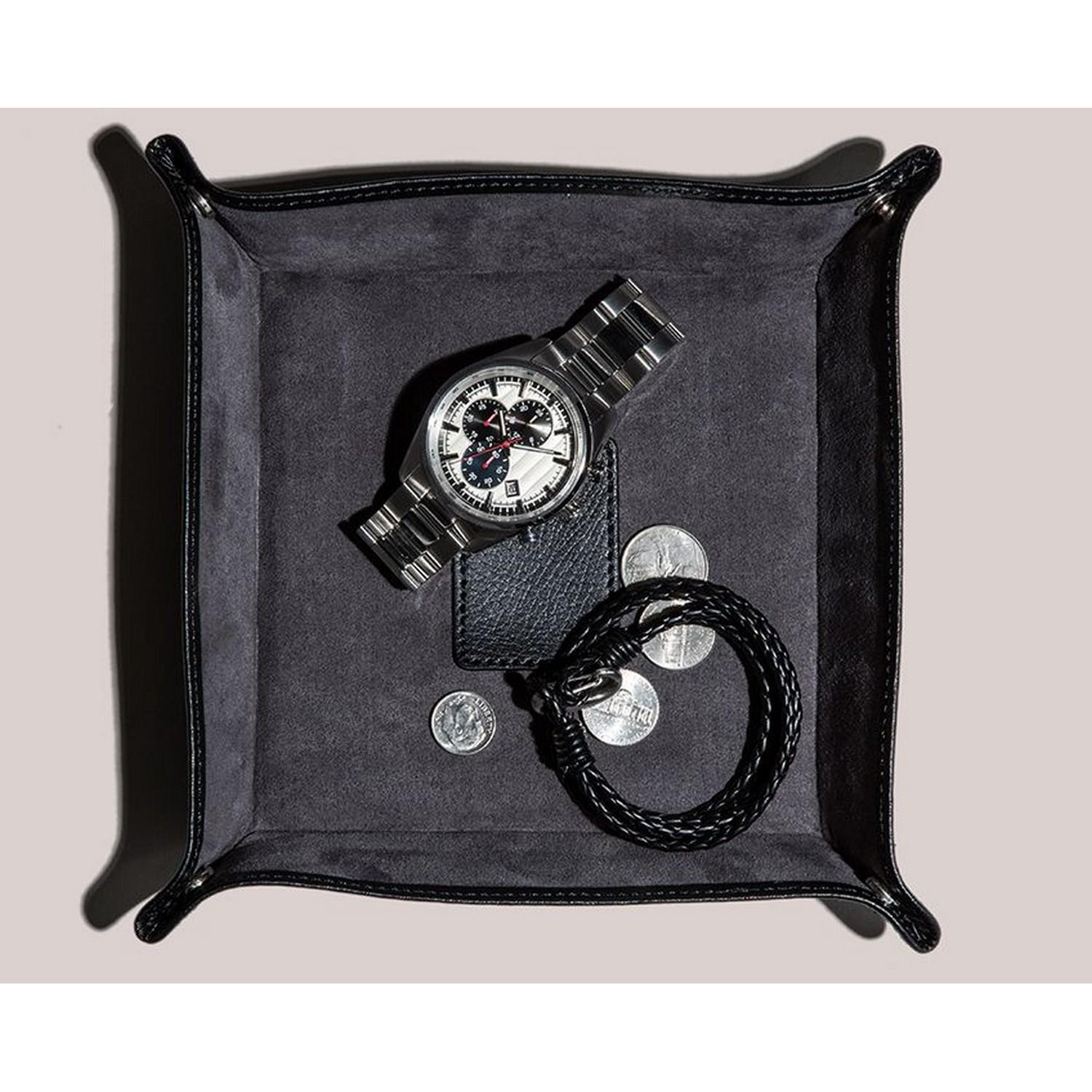 Blake ist stilvoll und klassisch und wird durch genarbtes Leder, Chrom und kräftige Akzente zum Leben erweckt. Ob auf Reisen oder zu Hause, das stilvolle Blake-Münztablett aus Leder bewahrt Ihre wichtigsten Utensilien an einem Ort auf. Mit Ultrasuede-Futter und Druckknopfverschluss.