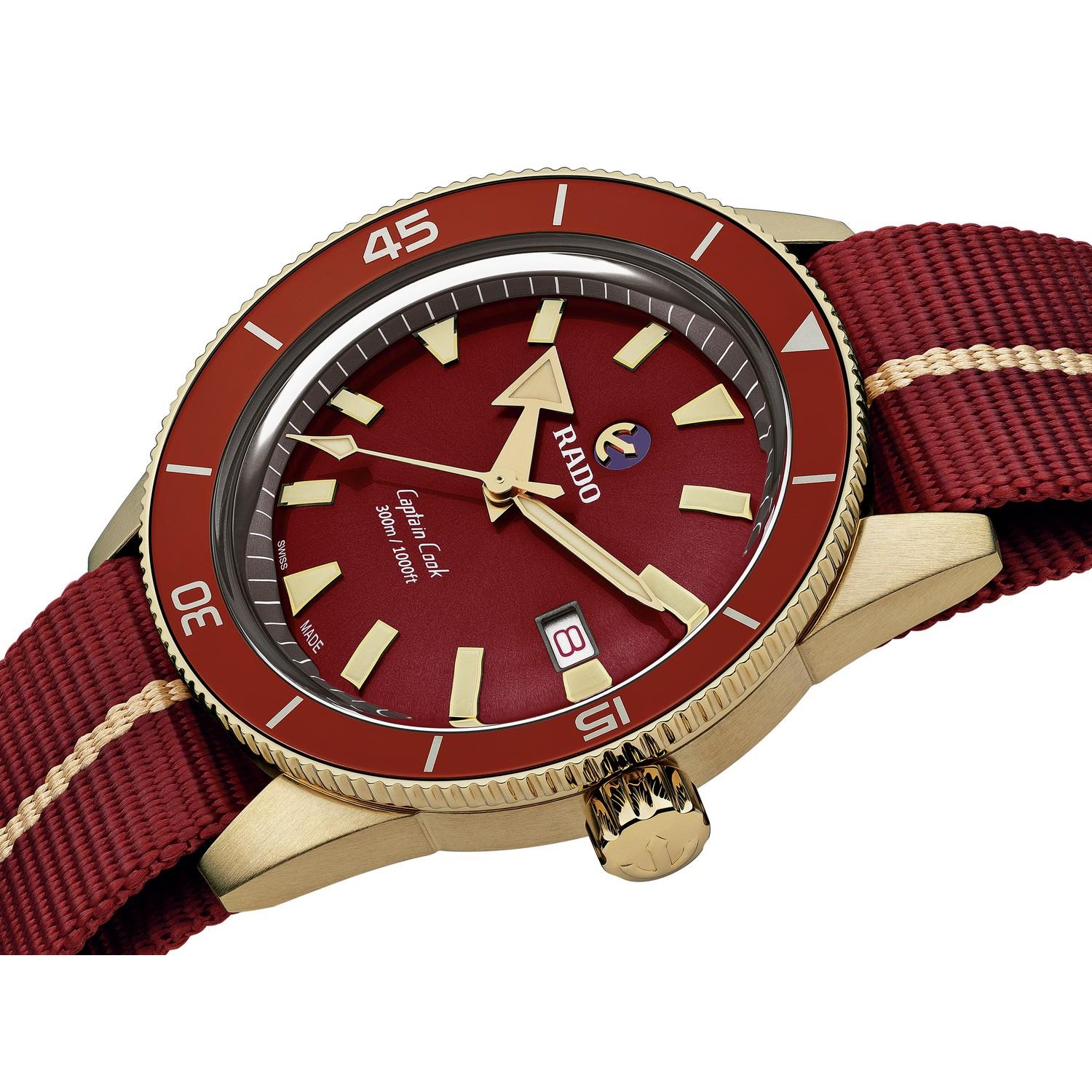Das Design aus dem Jahr 1962 wird in einer neuen und verbesserten Form für das 21. Jahrhundert wieder zum Leben erweckt. Vintage-Details, eine originalgetreue Gestaltung und zeitgemäße Funktionen für den modernen Träger machen die Captain Cook zu einer Uhr, die garantiert die Zeit überdauert. Das Modell mit einem Gehäuse aus Bronze sowie einem Nato Band aus widerstandsfähigen Synthetikgewebe, ist die perfekte Kombination aus antiken und modernen Materialien.