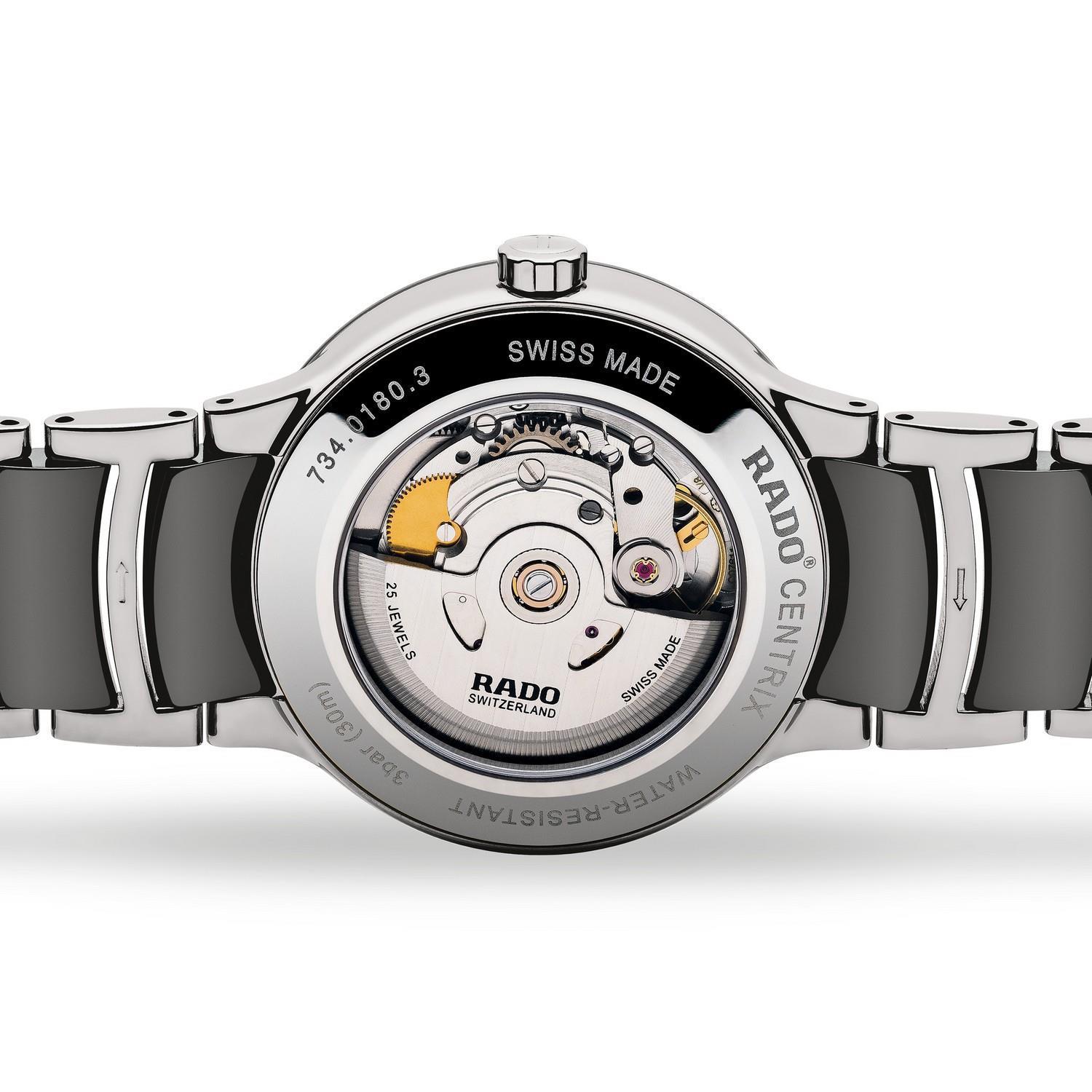 Die Rado Centrix Automatic beweist ihre Vielseitigkeit mit einer Reihe verschiedener Größen und Farbkombinationen, sodass es garantiert ein Modell für jeden Geschmack gibt. Dank Rados charakteristischem Saphirglas für einen kratzfesten Glanz sind diese Uhren ein Leben lang schön anzuschauen.