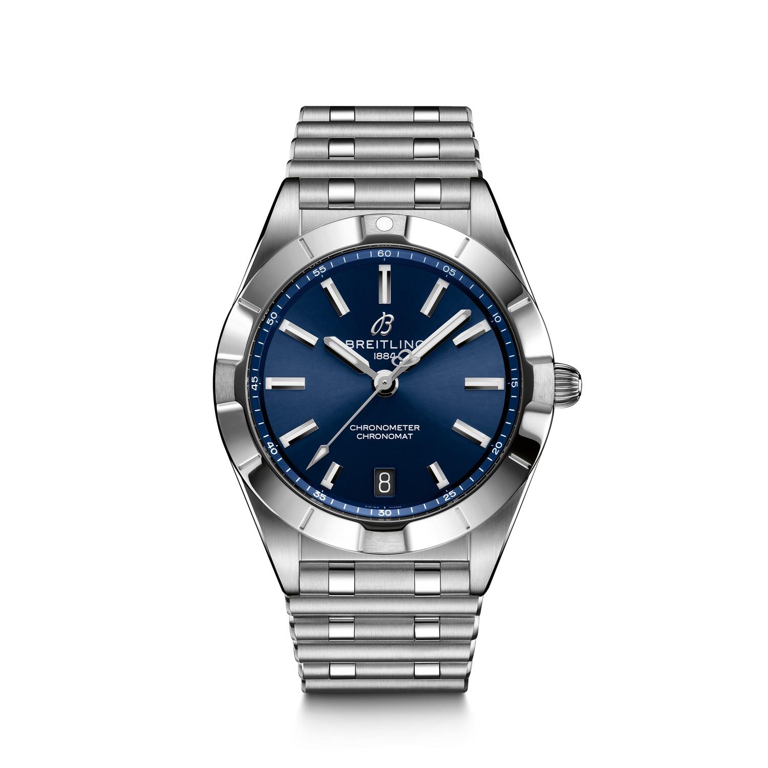 Stylish und doch elegant – die Chronomat 32 mit modernem Retro-Touch ist eine vielseitige, sportlich-schicke Uhr für jeden Anlass. Die breite Palette an Metallgehäusen reicht von coolem Edelstahl über die zweifarbigen Allrounder bis hin zu luxuriösem 18-karätigen Rotgold. Diamantbesetzte Lünetten und Zeiger sowie farbenfrohe Zifferblätter zaubern auf Wunsch ein zusätzliches Funkeln auf den Zeitmesser für Damen. Die Chronomat 32 wird von dem Breitling-Kaliber 77, einem COSC-zertifizierten Chronometer, angetrieben und auf dem legendären, bequemen Rouleaux-Armband mit Doppelfaltschliesse der Marke präsentiert.