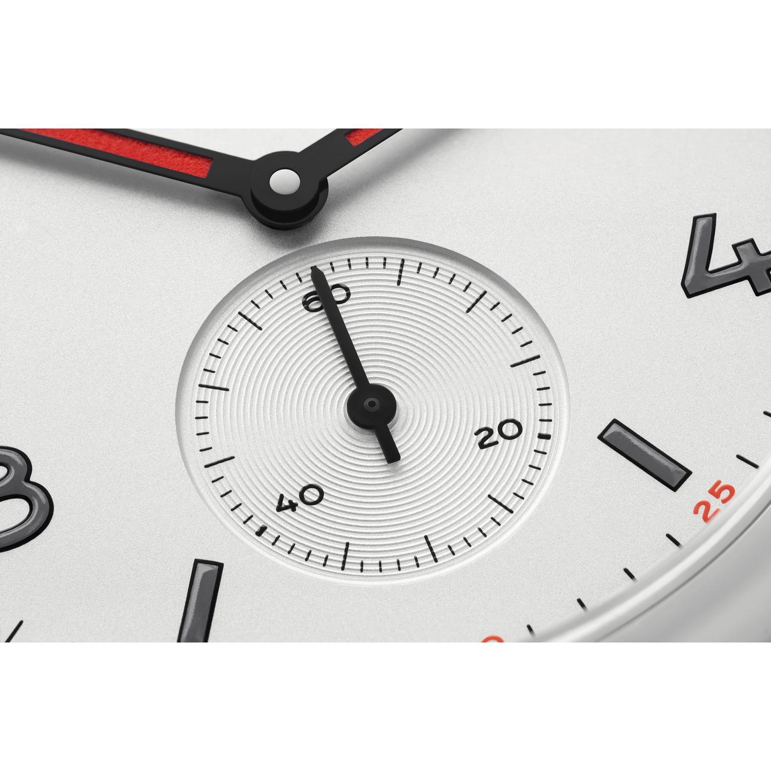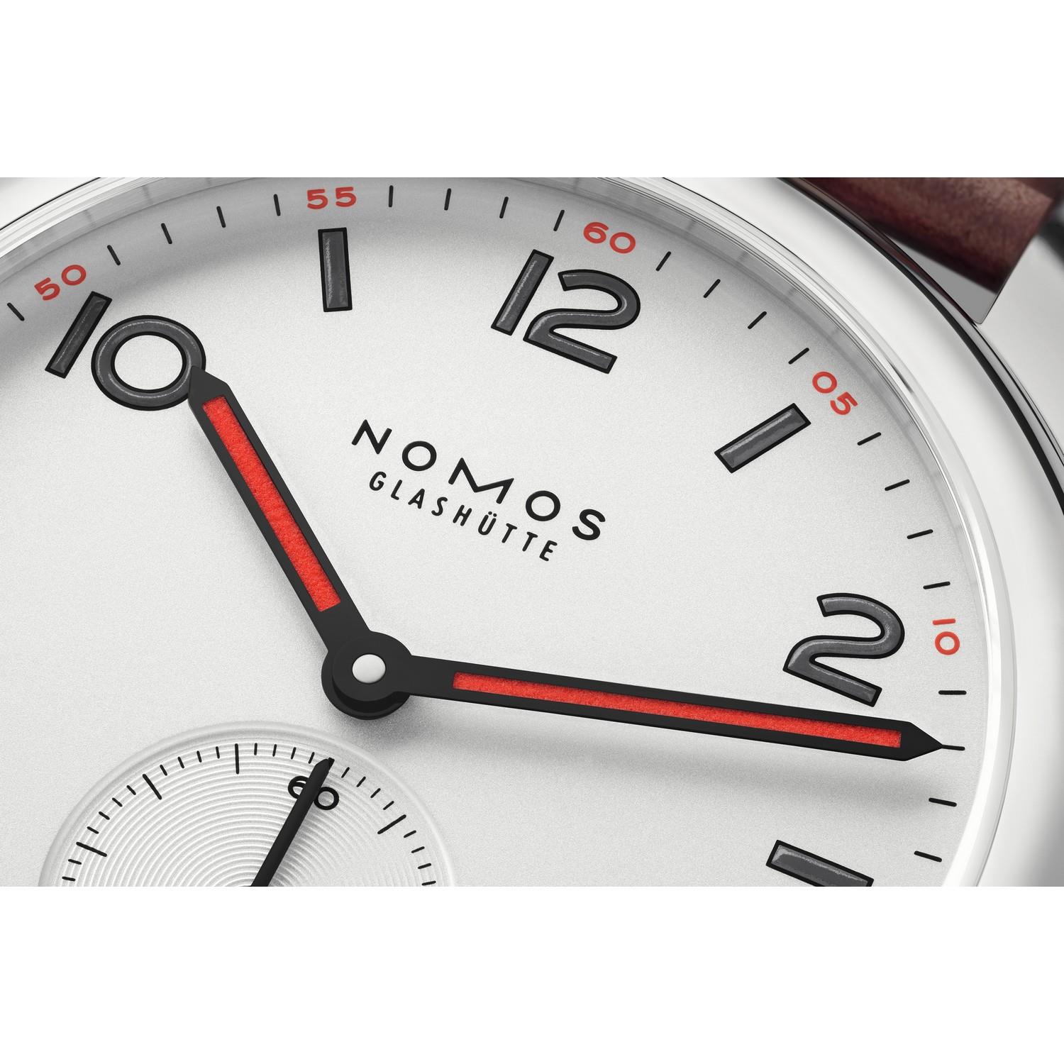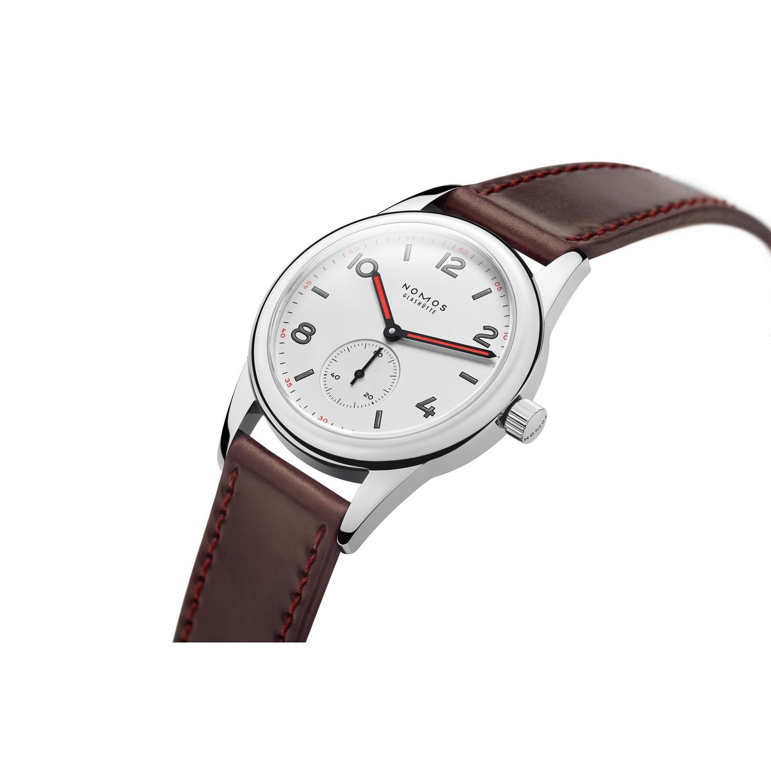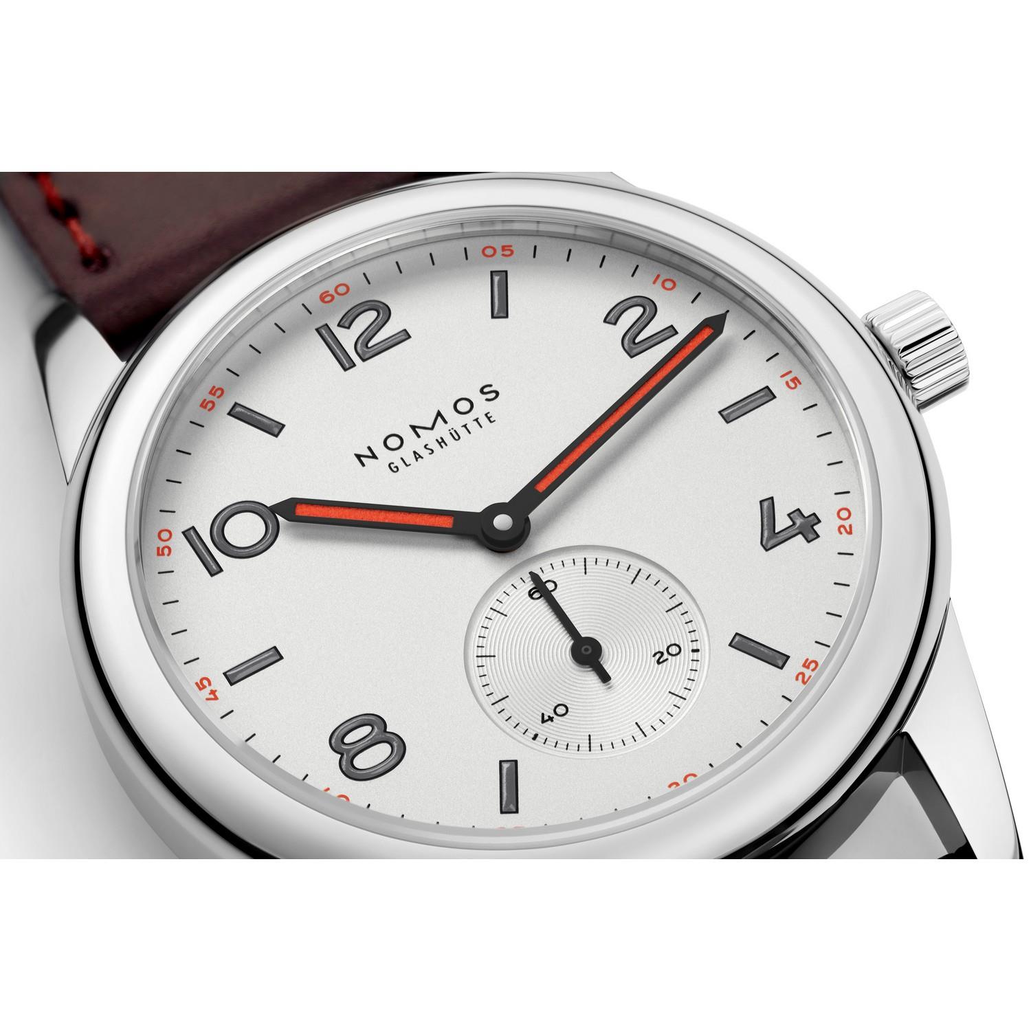 Sportlich, jung, unkonventionell: Club steckt Zuneigungsbekundungen (und andere Erschütterungen) locker weg. Gehäuse aus Edelstahl und Saphirglas: Hier kann nichts passieren. Die markanten Zeiger drehen selbstbewusst ihre Runden auf dem weiß versilberten Zifferblatt. Und NOMOS-Manufakturkaliber Alpha sorgt für höchste Präzision.