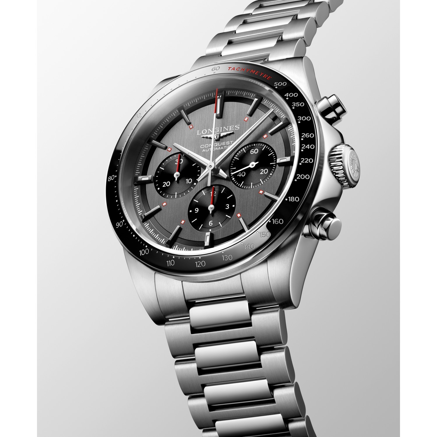 Die Conquest, die ultimative Uhr für jeden Tag, war auch die erste LONGINES Kollektion, deren Name 1954 durch das Eidgenössische Institut für Geistiges Eigentum geschützt wurde. Seitdem hat sich die Kollektion durch Design und Technologie weiterentwickelt, ist aber ihrer ursprünglichen Identität treu geblieben und strahlt eine harmonische Mischung aus Kühnheit, zeitgenössischem Design und sportlicher Eleganz aus. Jede Conquest Chronograph Uhr ist ein Beweis für das unermüdliche Engagement von LONGINES für Leistung und uhrmacherische Exzellenz. Diese eleganten Uhren werden von exklusiven LONGINES Kalibern angetrieben, die mit einer Unruhspiralfeder aus Silizium ausgestattet sind.