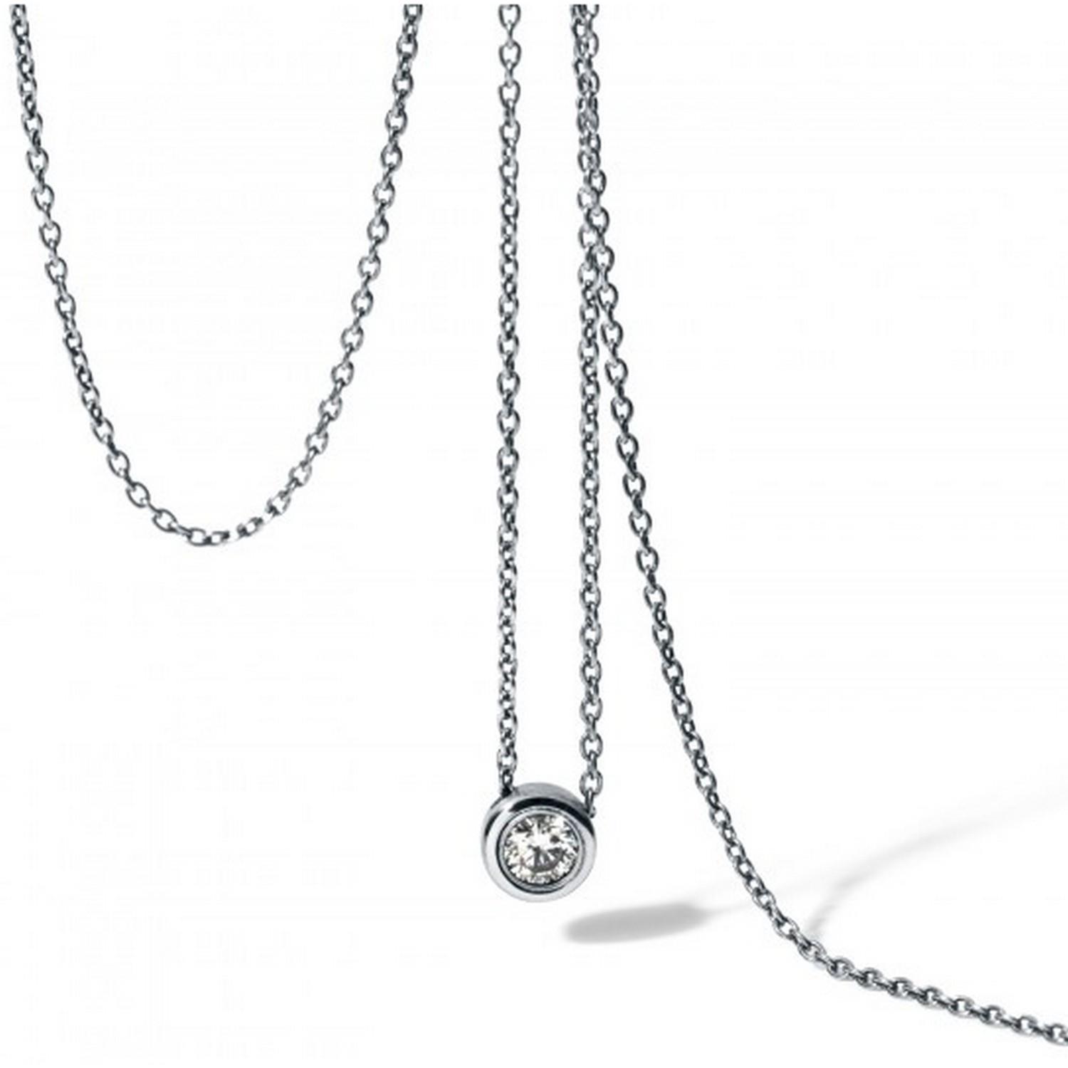 Die zarte Diamantkette schmiegt sich sanft an den Hals. Sollten Sie irgendwann eine andere Kettenlänge oder ein anderes Collier wünschen, ist es möglich, den Anhänger von uns neu montieren zu lassen.