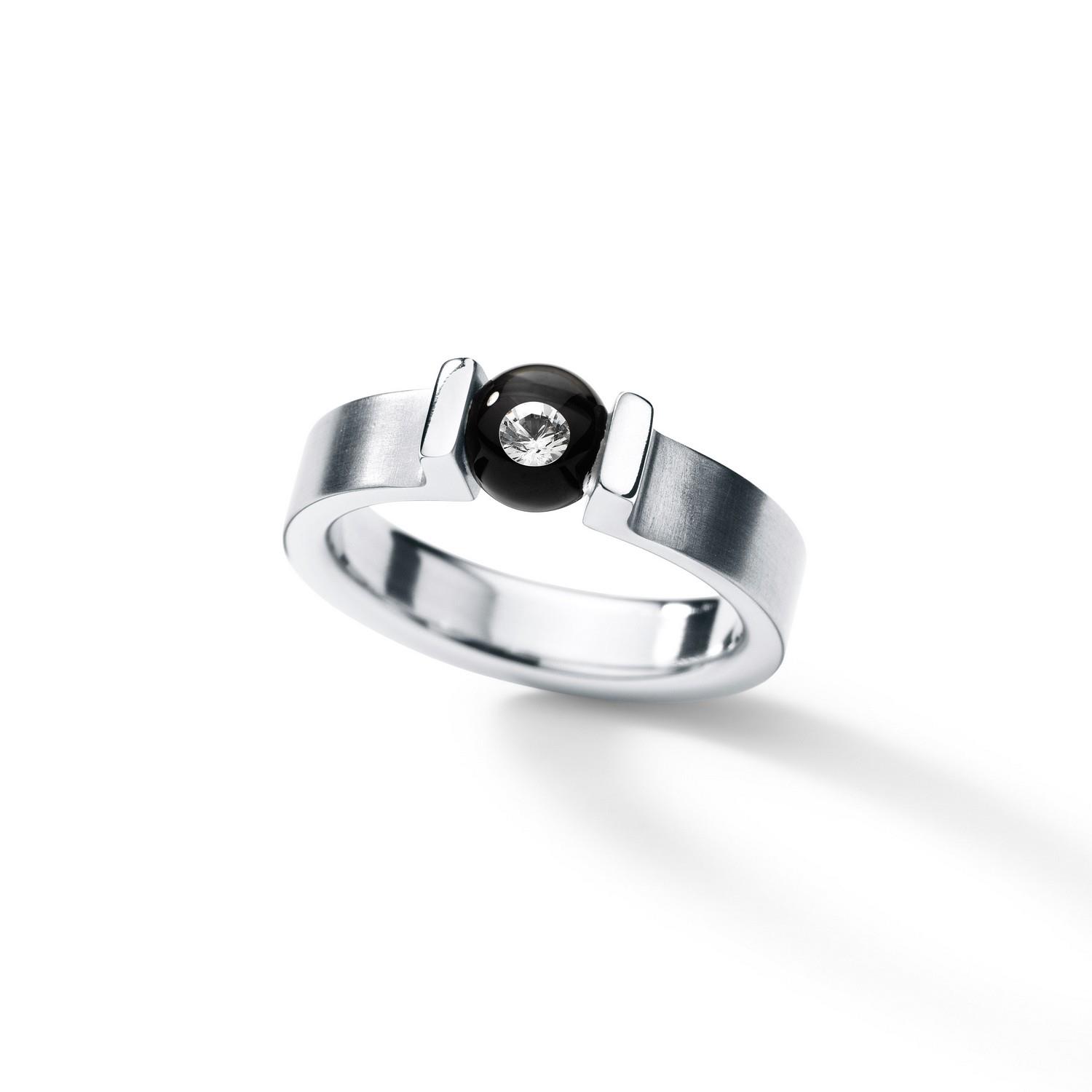 Edelstahlring mit einem Brillant in Glas TW-VS