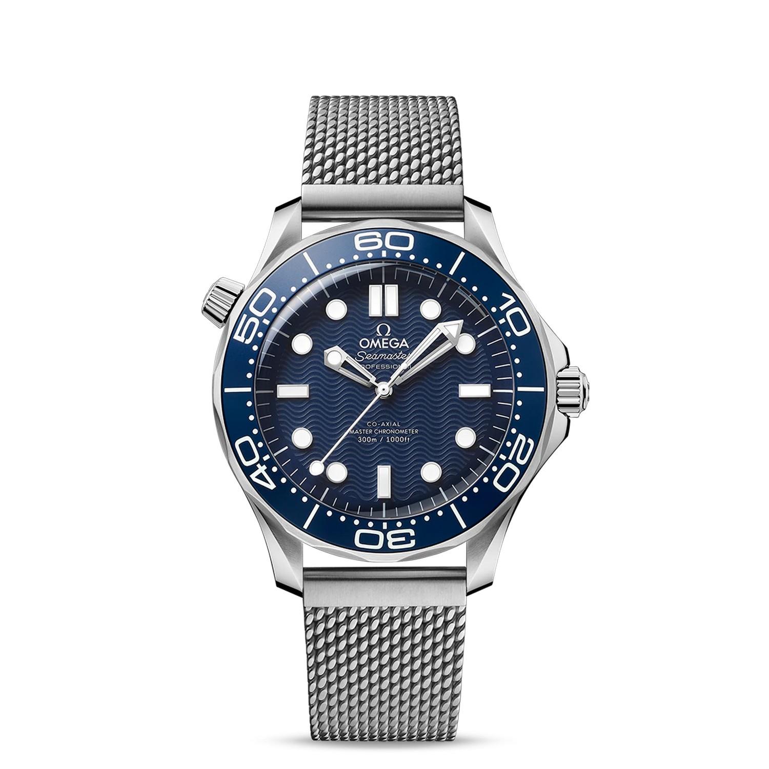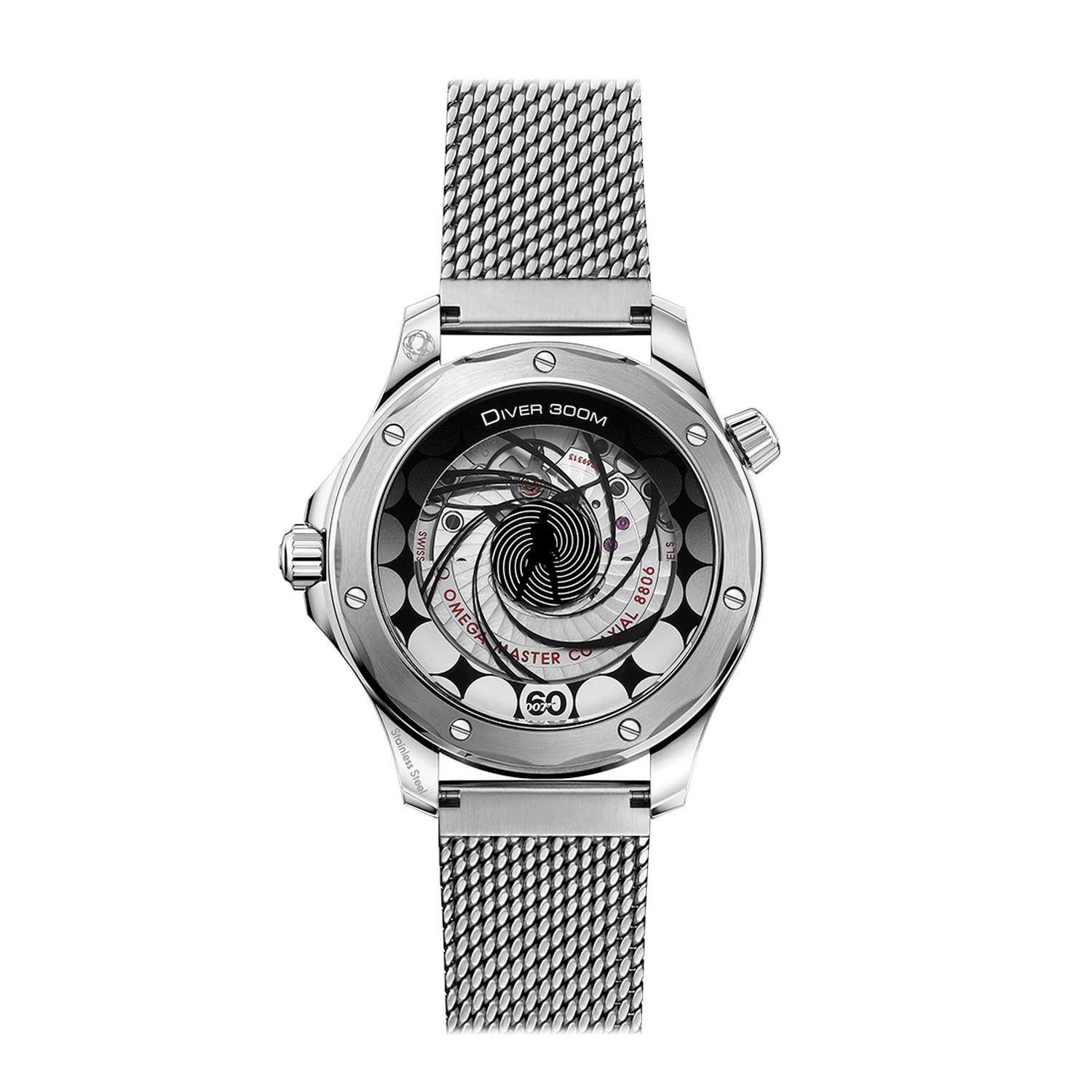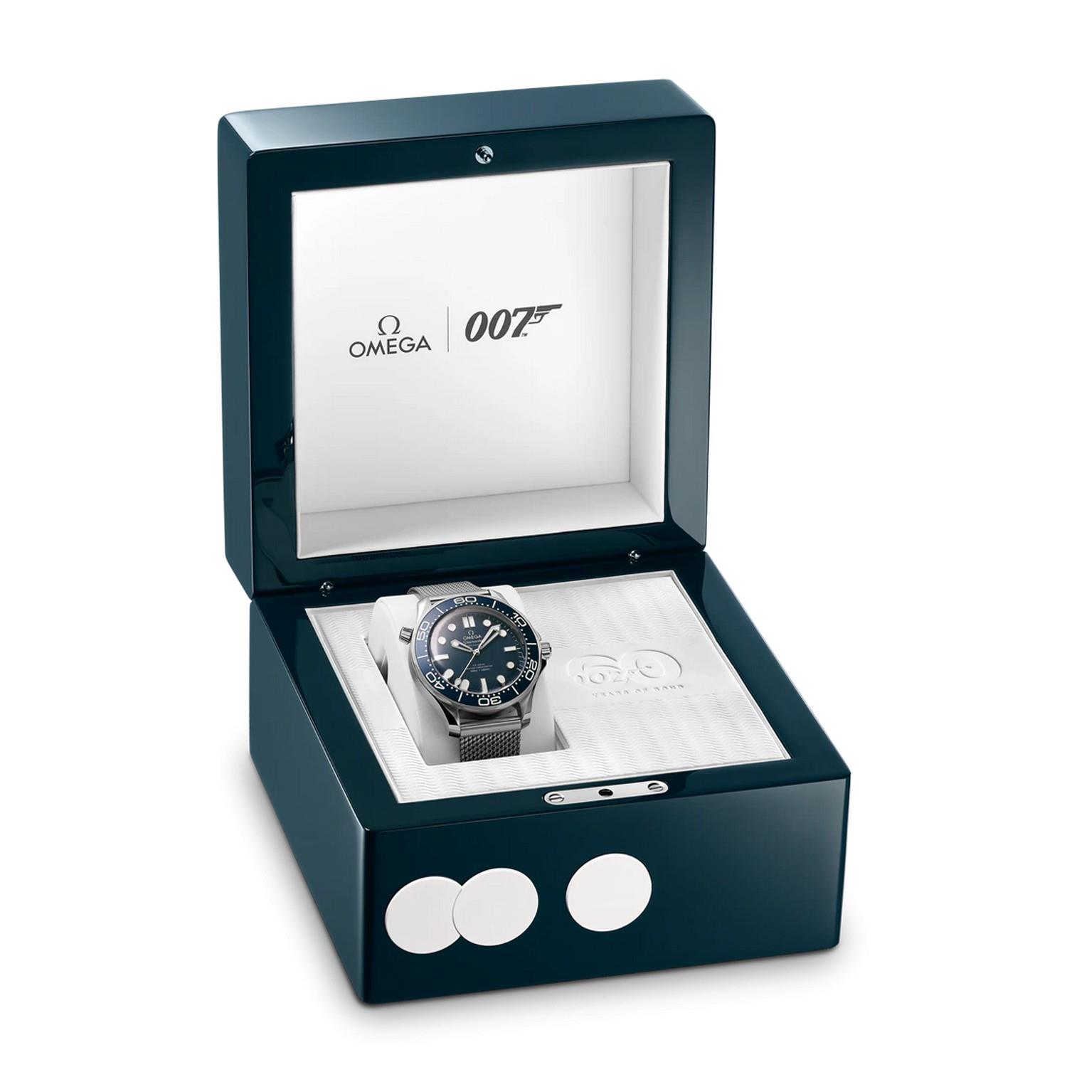 Die 2022 zum 60-jährigen Jubiläum von James Bond lancierte Seamaster Diver 300M aus Edelstahl mit 42 mm Durchmesser besitzt ein blaues, anhand von Oxalsäure eloxiertes Aluminiumzifferblatt mit per Laser eingravierten Wellen, das an die von James Bond 1995 in GoldenEye getragene Seamaster Diver 300M angelehnt ist. Anstelle des traditionellen umgedrehten Dreiecks befindet sich auf der Tauchskala eine 60.