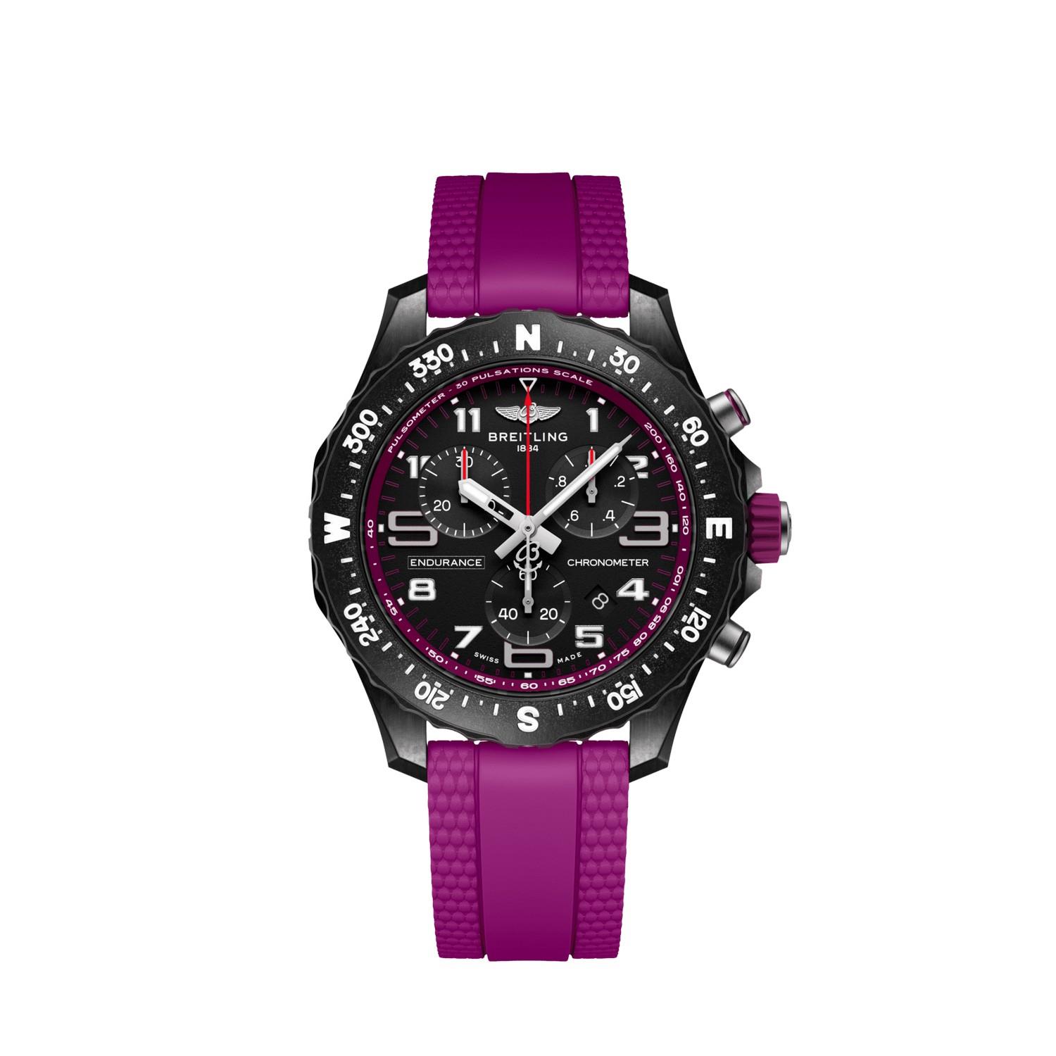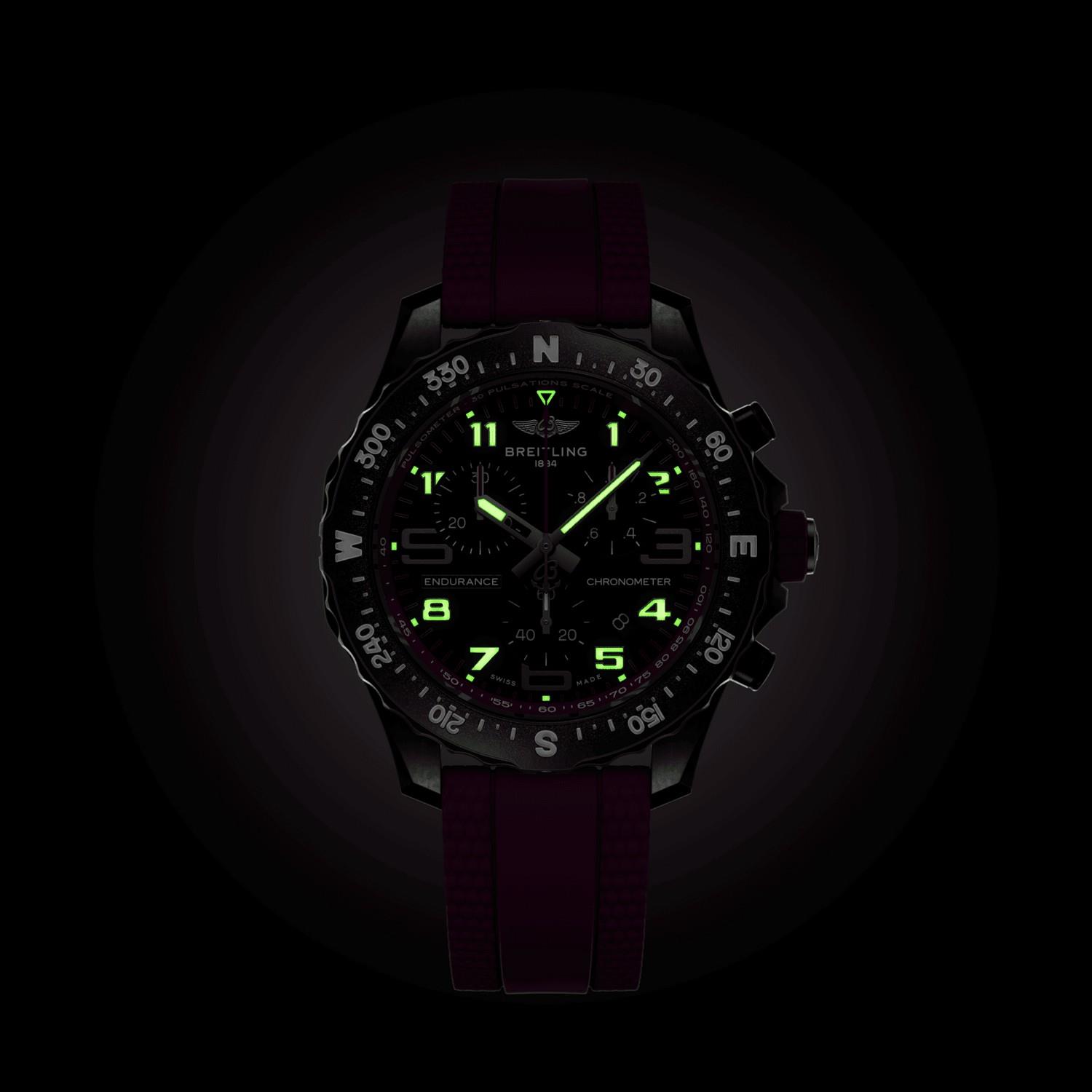Die Endurance Pro ist als besonders leichter Wettkampfzeitmesser, aber auch als lässiger Sportchronometer für jeden Tag konzipiert. Sie repräsentiert die perfekte Verschmelzung von innovativer Technologie und frischem Design und ist damit die ultimative Athleisure-Uhr. Die Endurance Pro wurde für Frauen und Männer gestaltet, in deren aktivem Leben Professionalität und Sportlichkeit zusammenfinden. Sie ist den Herausforderungen eines anstrengenden Workouts gewachsen, ist aber auch ein stilvoller Begleiter im Alltag. Die Endurance Pro verfügt über ein ultraleichtes Gehäuse aus Breitlight®. Dieser widerstandsfähige Werkstoff ist 3,3-mal leichter als Titan und 5,8-mal leichter als Edelstahl. Das antimagnetische, thermisch stabile und hypoallergene Breitlight® ist hochgradig kratz-, zug- und korrosionsfest. Die haptische Wirkung ist wärmer als die von Metall; der leichte Textureffekt unterstreicht den Einfallsreichtum des Designs. Das Material ist zu 100 % Swiss-made und nur bei Breitling erhältlich. Neben einem Durchmesser von 44 mm oder 38 mm haben Athleten bei der Endurance Pro ausserdem die Wahl zwischen zahlreichen farbenfrohen Zifferblättern und Kautschukarmbändern mit der Breitlight®-Dornschliesse. Beide Grössen werden vom Breitling-Kaliber 82 bzw. 83 angetrieben. Diese COSC-zertifizierten SuperQuartz™-Chronographen zeichnen sich durch eine aussergewöhnliche Ganggenauigkeit aus.