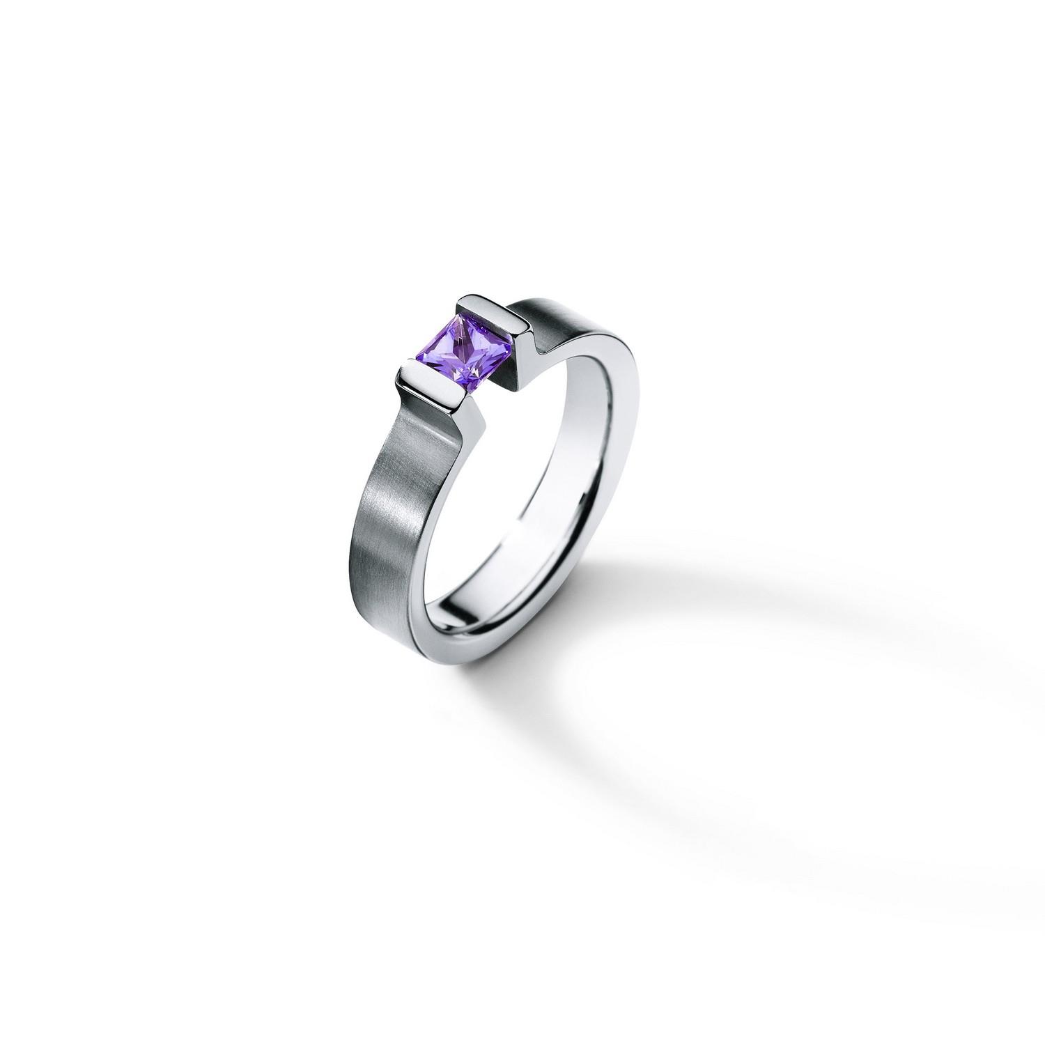 Der Amethyst wird durch die Spannung im Ring gehalten, wodurch es so wirkt, als ob der Stein schwebt.