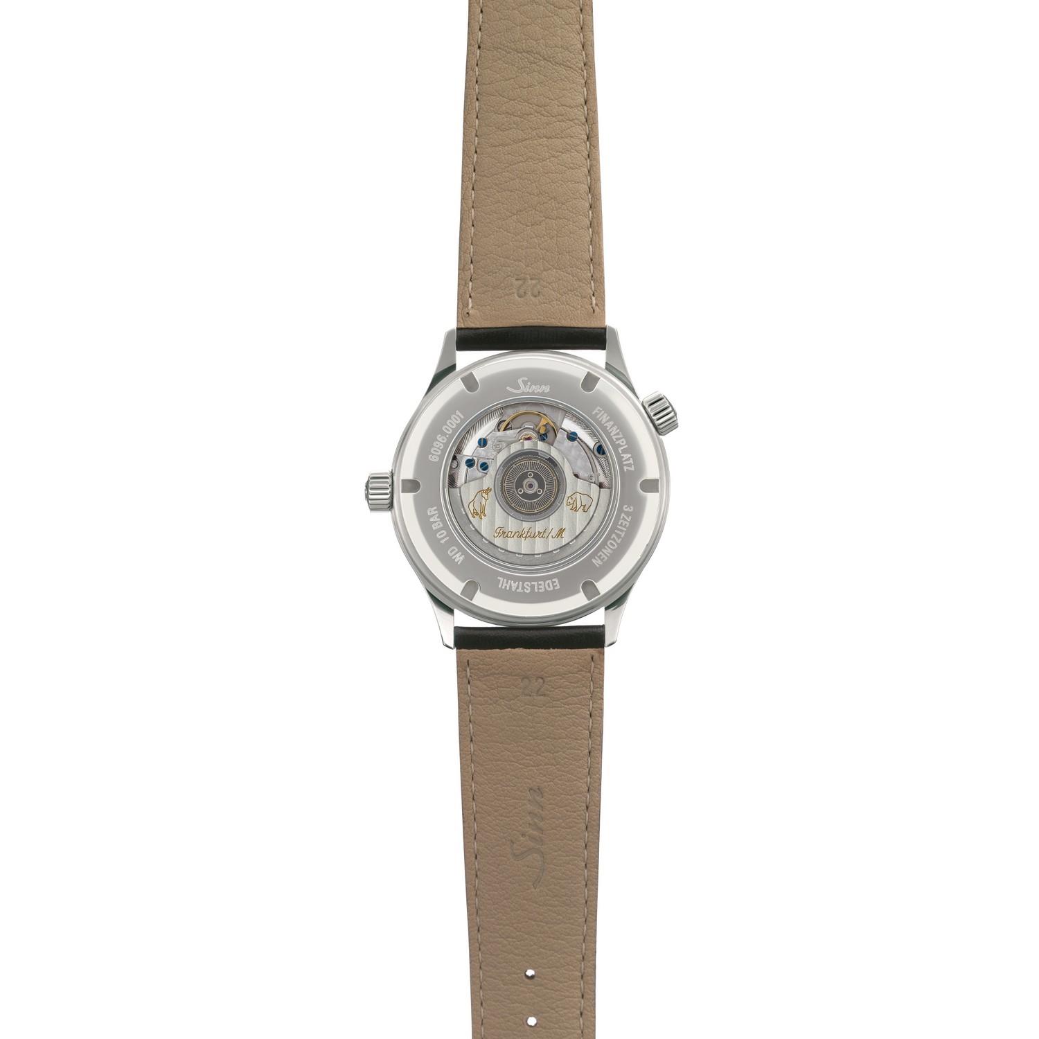 Ausgestattet ist die 6096 mit einem polierten Gehäuse aus Edelstahl und einem Deckglas aus Saphirkristall, welches wir auch für den Sichtboden verwenden, so dass sich das fein veredelte Uhrwerk eindrucksvoll bewundern lässt. Die Rotorgravur von Bulle und Bär, den klassischen Börsensymbolen, stellt einen stilvollen Bezug zu Frankfurt am Main als Herkunftsort dieser Uhr her.