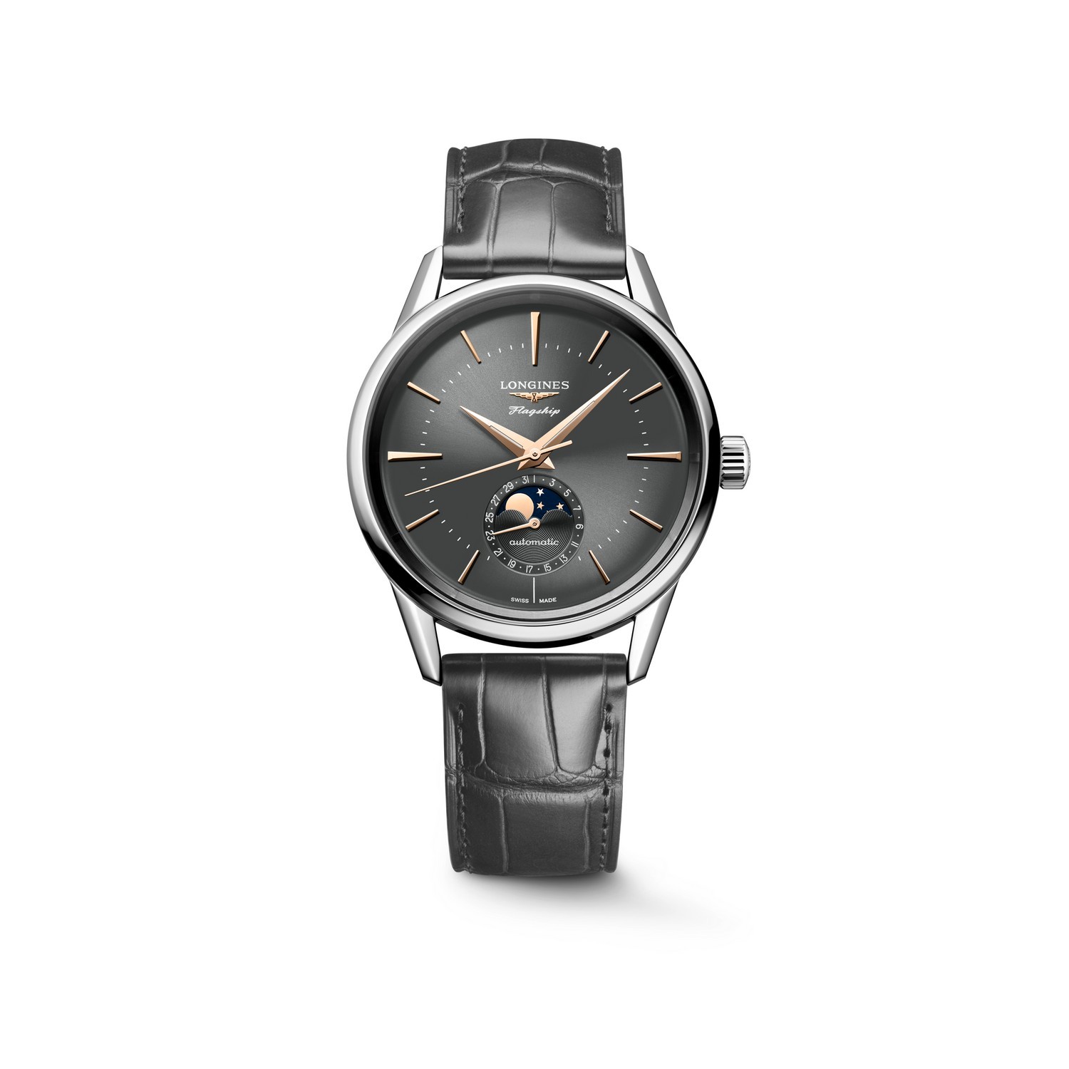 Die Eleganz und Schlichtheit der Flagship Heritage Modelle haben diese LONGINES Kollektion zu einem zeitlosen Klassiker gemacht. Diese Uhren vereinen technisches Know-how, Ästhetik und eine Hommage an die historischen Flagship Modelle. Der Name Flagship ist seit den späten 1950er Jahren ein Wahrzeichen der Marke und war eine der ersten Kollektionen von LONGINES. Das „Flaggschiff“ führt die Flagge des Oberbefehlshabers der Flotte. Das Emblem der Kollektion, eine handgemalte Karavelle mit Emaille auf einem Medaillon aus 18 Karat Gold, ist auf dem verschraubten Gehäuseboden zu sehen.