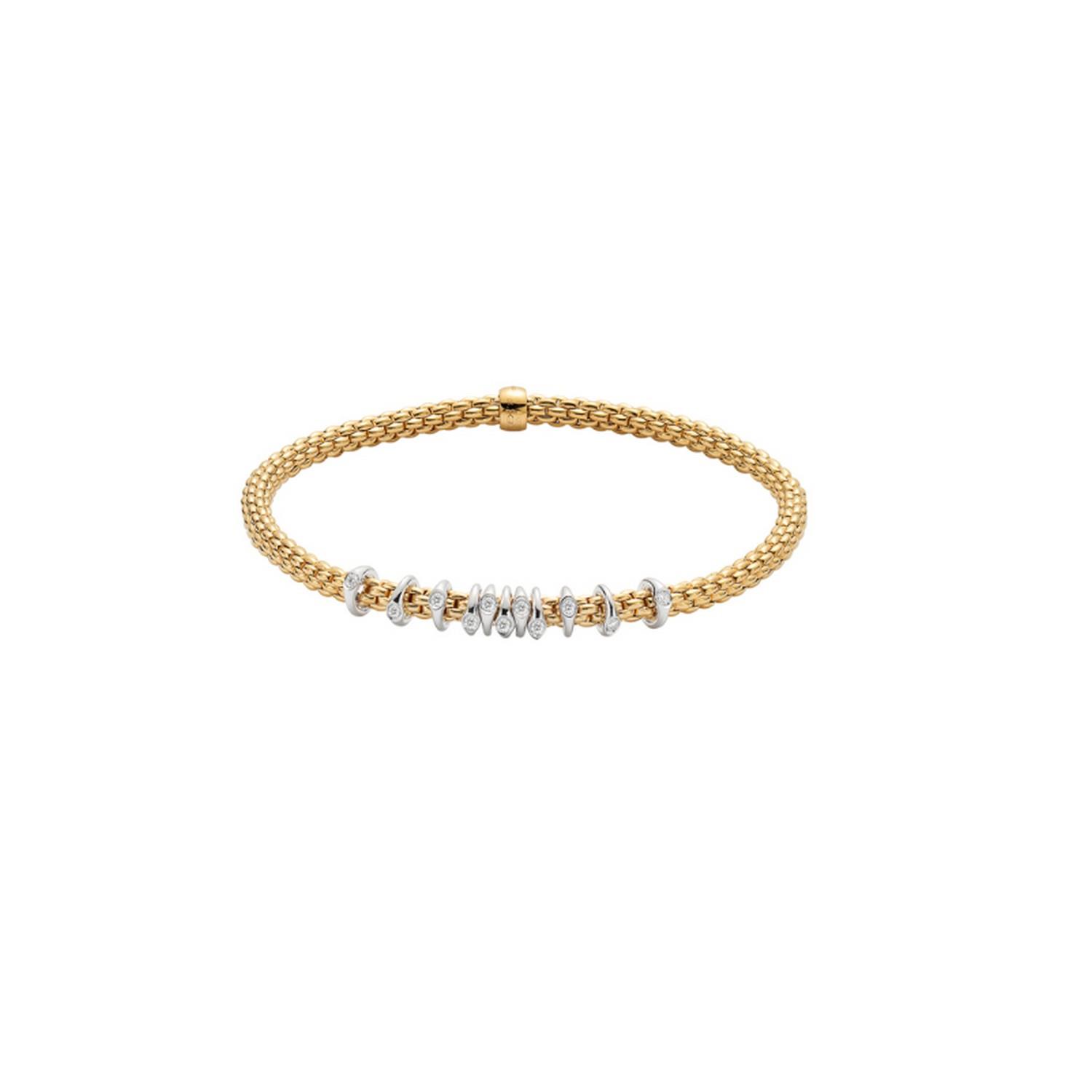 Flexibles Armband aus 750 Gold mit Rondellen aus Gold und Diamanten.