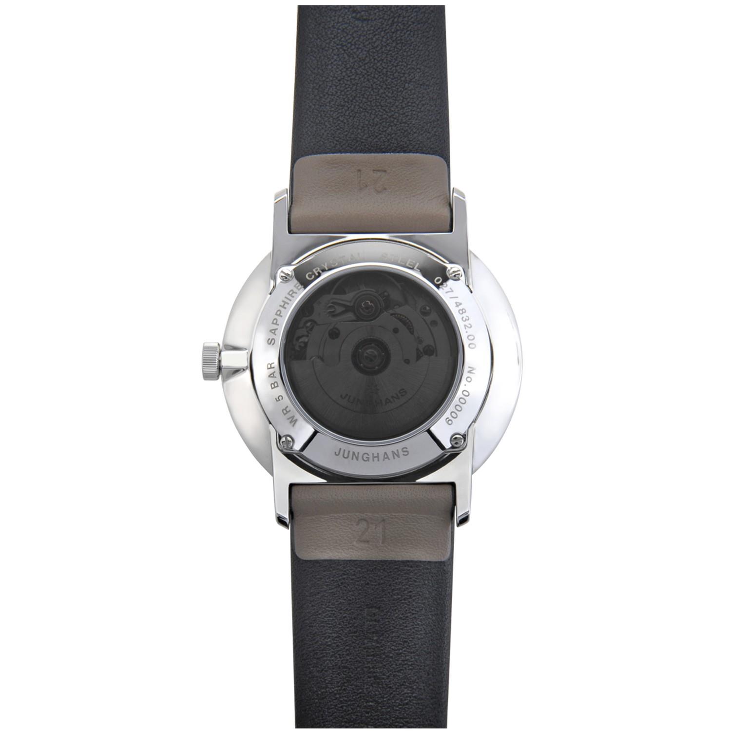 Frontal betrachtet, präsentiert sich die FORM A hart und streng, von der Seite weich geschwungen und ergonomisch geformt. Die konvexe Gehäuseform unterstreicht die flache Erscheinung und unterstützt den Tragekomfort. Die quadratisch geprägte Minuterie und das konkav gewölbte Zifferblatt schaffen eine bemerkenswerte Dreidimensionalität. Das „A“ steht für die Antriebsart mit Automatikwerk.