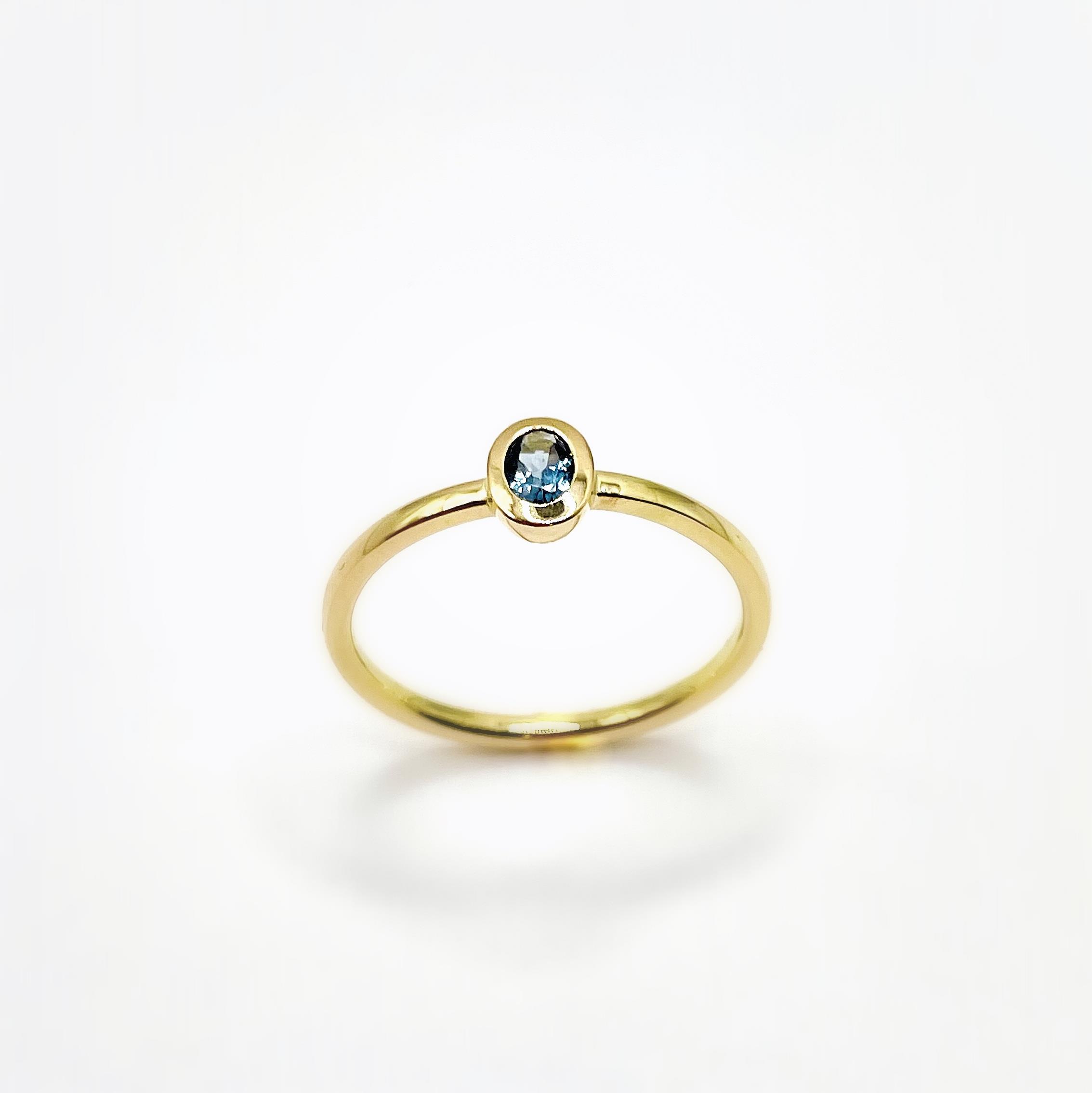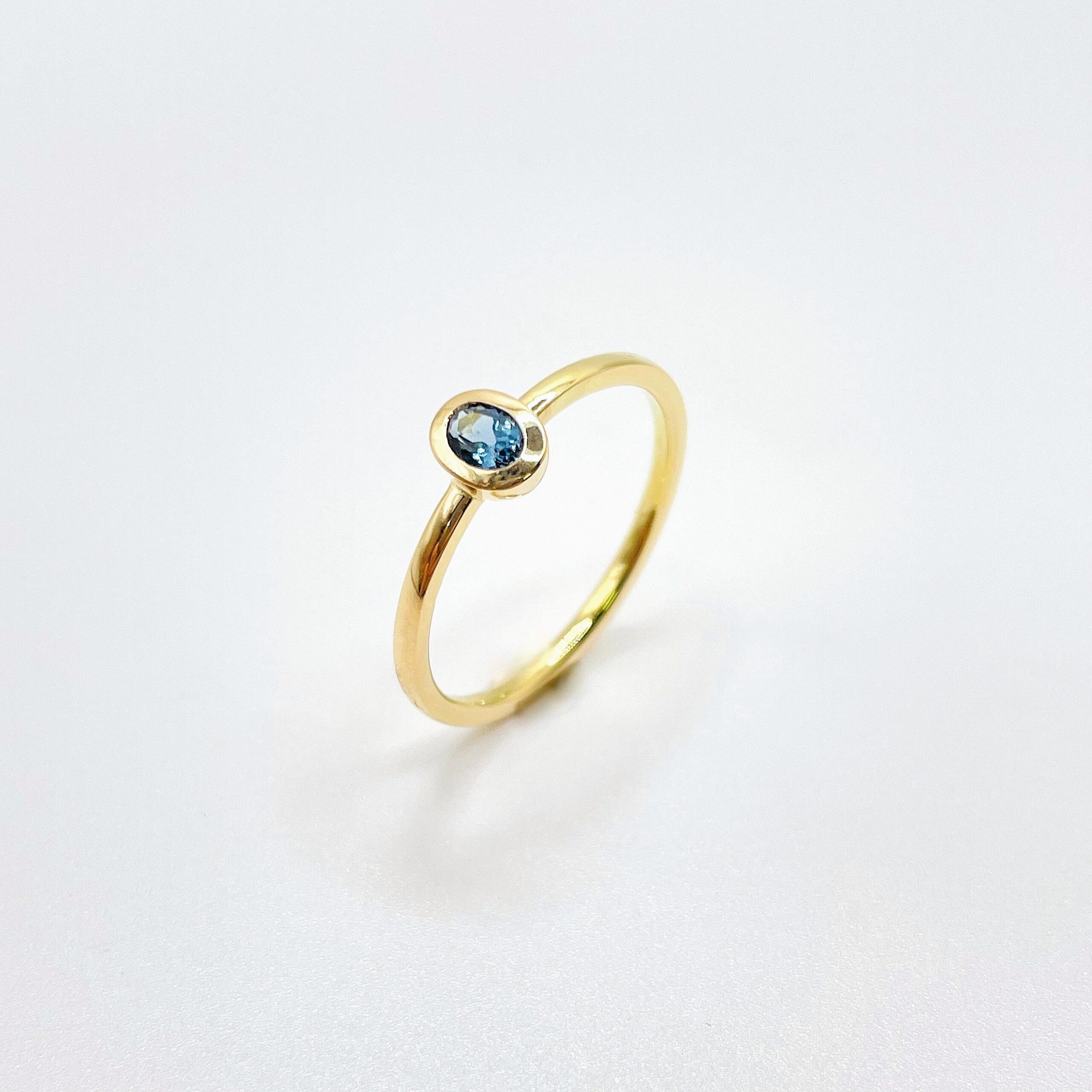 SCHMALER RING AUS ROSÈGOLD MIT EINEM LONDON BLUE TOPAS IM OVALSCHLIFF