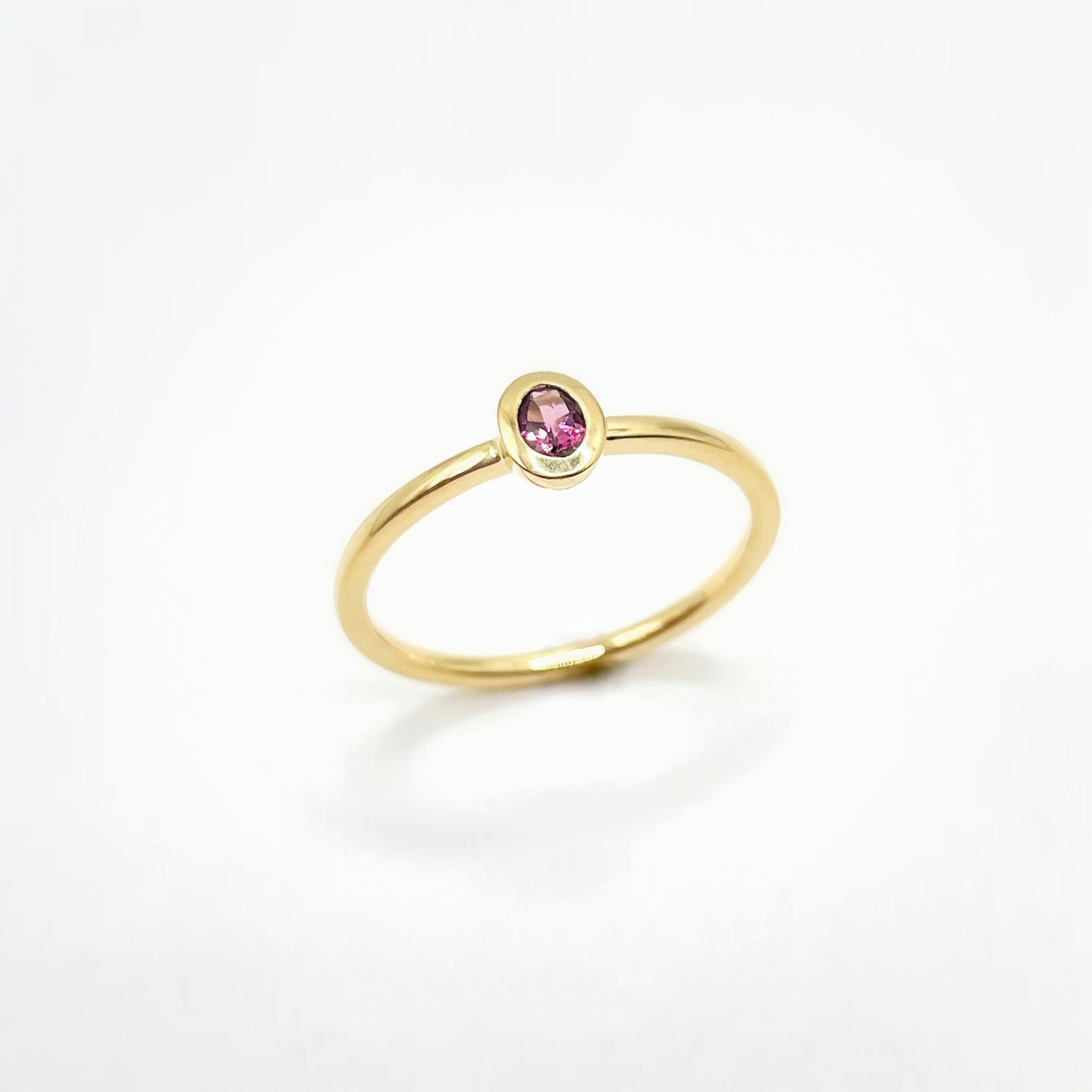 SCHMALER RING AUS ROSÈGOLD MIT EINEM ROTEN TURMALIN IM OVALSCHLIFF
