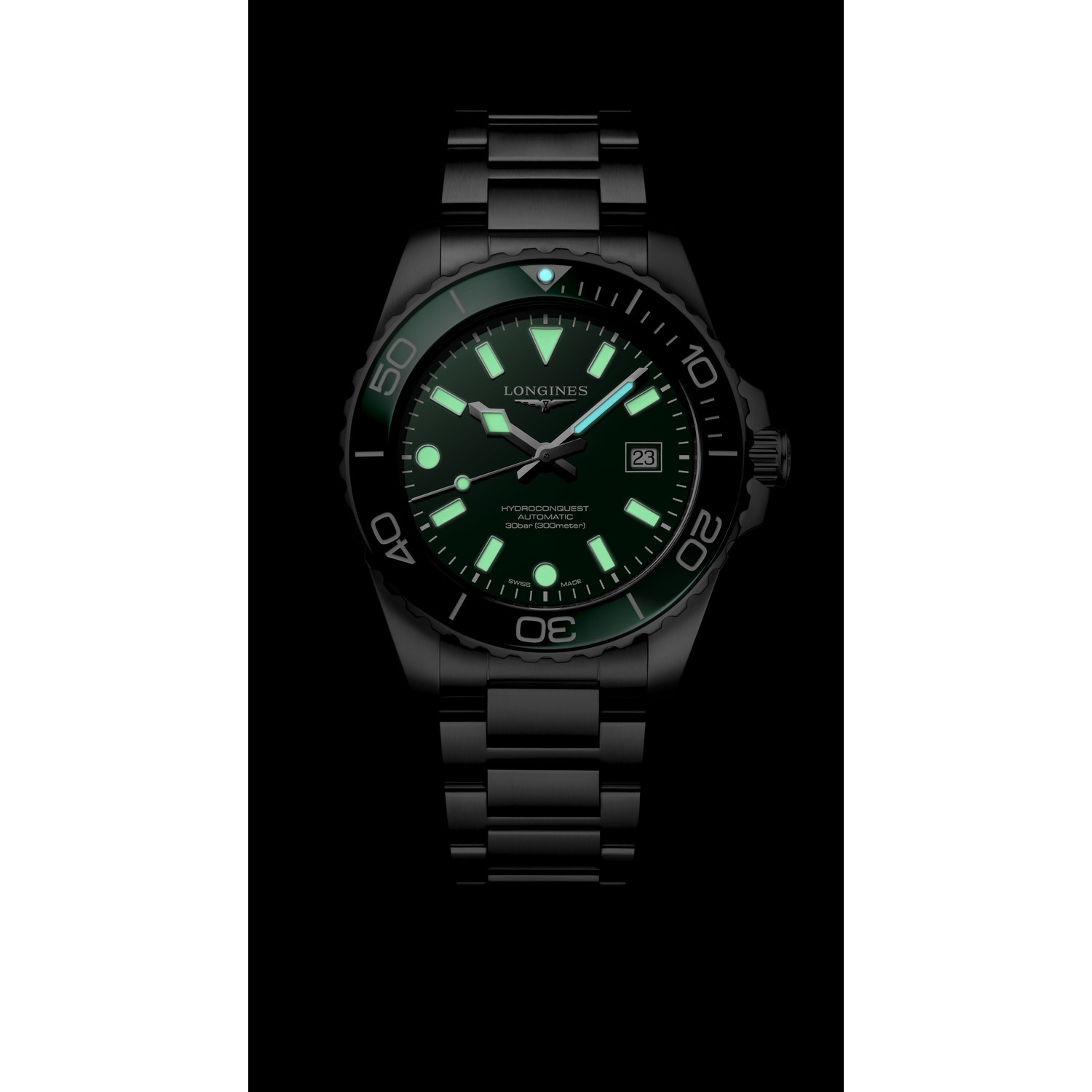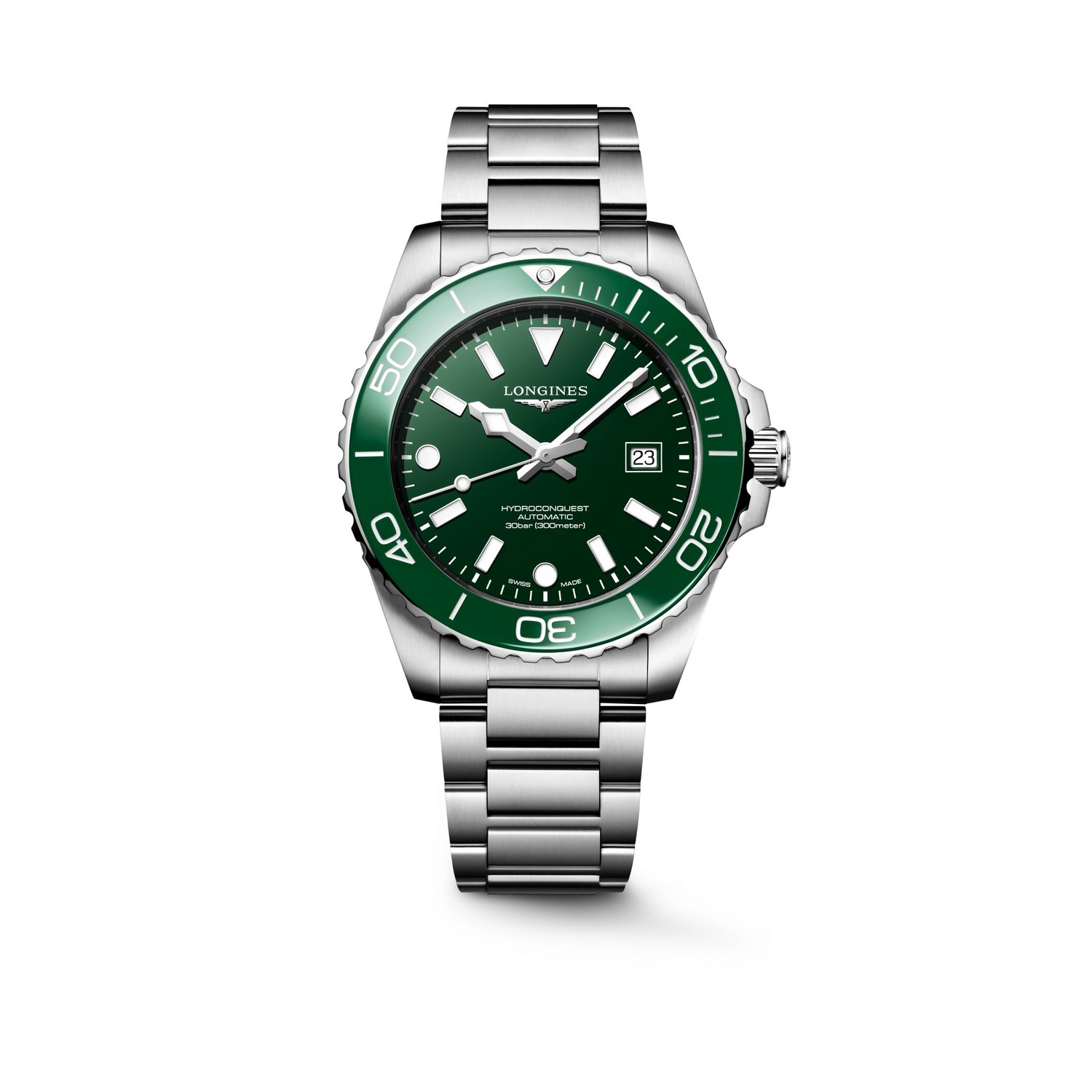 Die HYDROCONQUEST Kollektion vereint moderne Ästhetik mit nachweislicher Leistung. Angetrieben von einem exklusiven LONGINES Kaliber, wasserdicht bis zu 30 bar (300 m), mit einseitig drehbarer Lünette, verschraubter Krone und verschraubtem Gehäuseboden.
