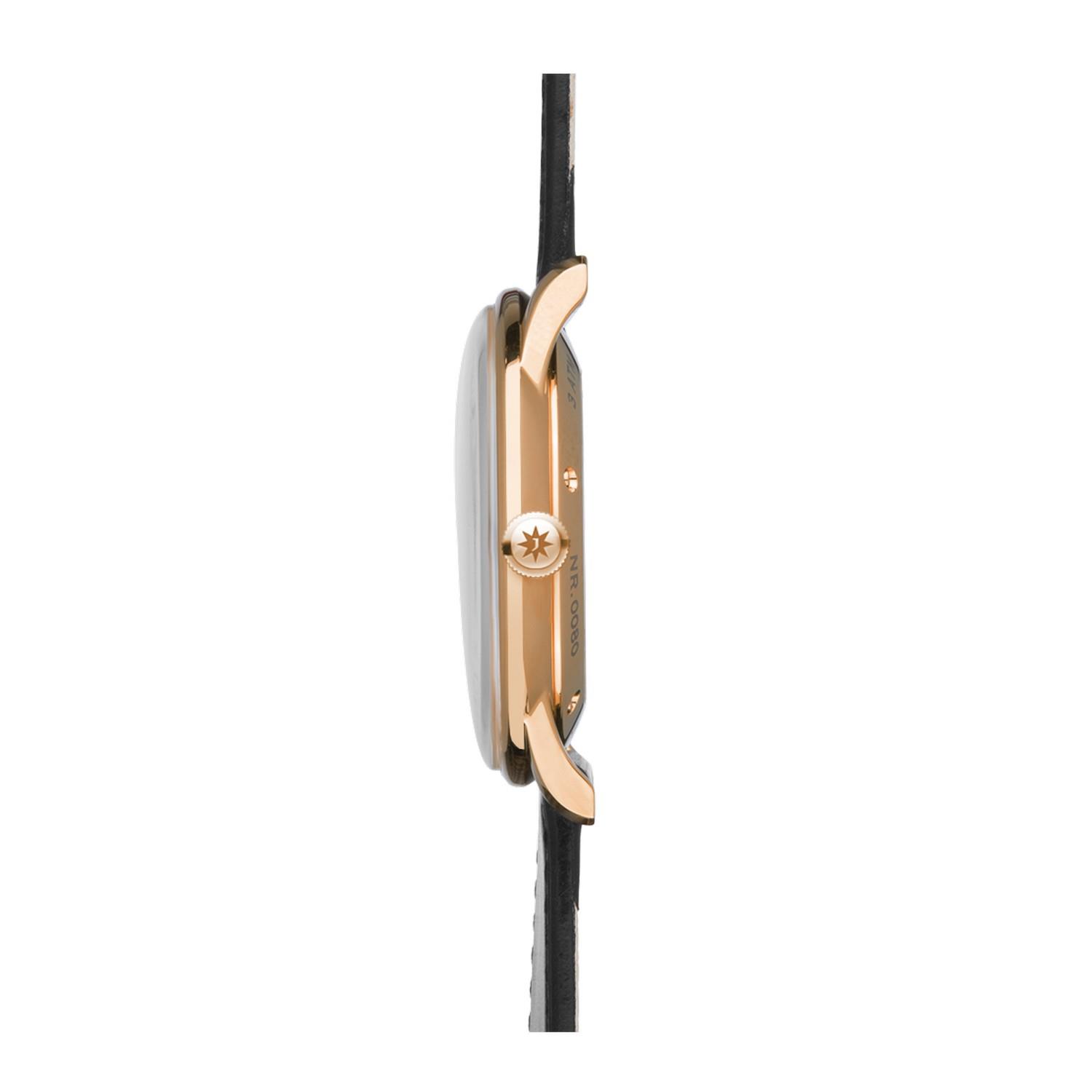 Die Meister Classic besticht durch eine elegante Optik und harmonische Proportionen durch und durch. Der Glasboden ermöglicht tiefe Einsichten in das mechanische Werk. Mit ihrem klassisch-traditionellen Design transportiert die Uhr mühelos den Stil der 1950er Jahre ins Hier und Jetzt.