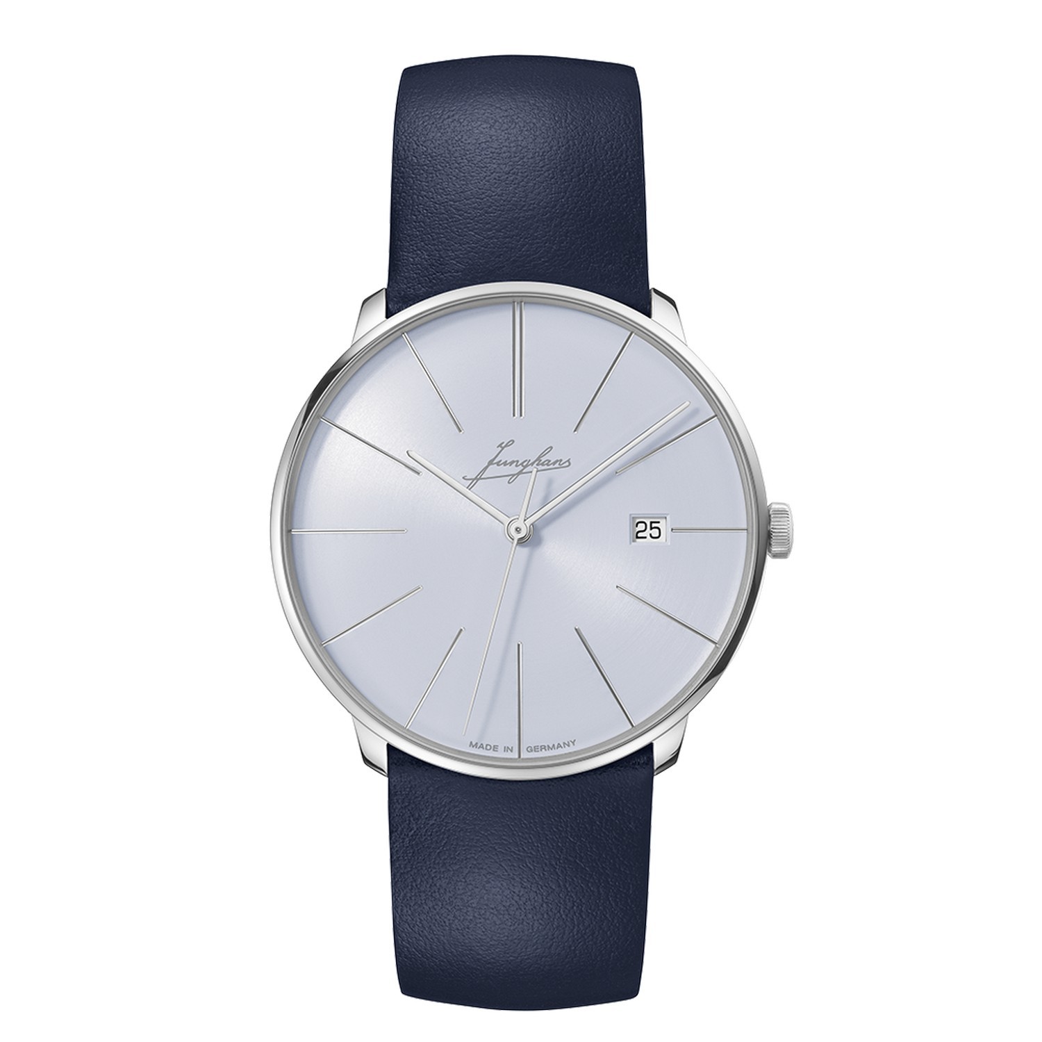 Die Meister fein Automatic Signatur besticht durch viele feine, wertvolle Details: Wie das flache und diskusförmige Gehäuse. Wie das gewölbte Front- und Bodenglas aus entspiegeltem Saphirglas. Wie das Zifferblatt mit einem historischen Junghans Logo und die dezenten diamantierten Linien für die Stundenmarkierungen. Durch den extragroßen Sichtboden kann man den eigens entwickelten zweischenkligen Rotor bewundern.