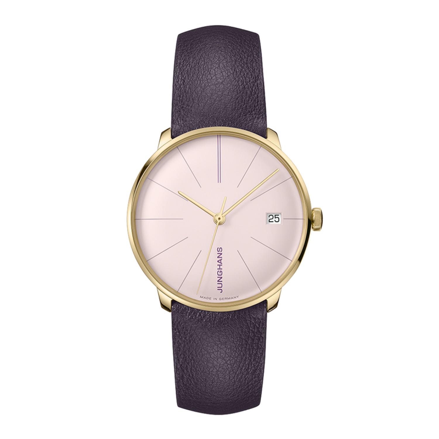 Großartiges Design bei reduzierter Größe: Die neue Meister fein Kleine Automatic hält, was ihr Name verspricht. Mit filigranen Stabzeigern, langgezogenen Indizes und der Integration des Junghans Schriftzugs bei sechs Uhr ist ihre Linienführung stringent und richtet den Fokus auf die besondere Geometrie. Nahtlos fügen sich das sphärische Saphirglas und das filigrane Uhrengehäuse zu einer Diskusform aus einem Guss.