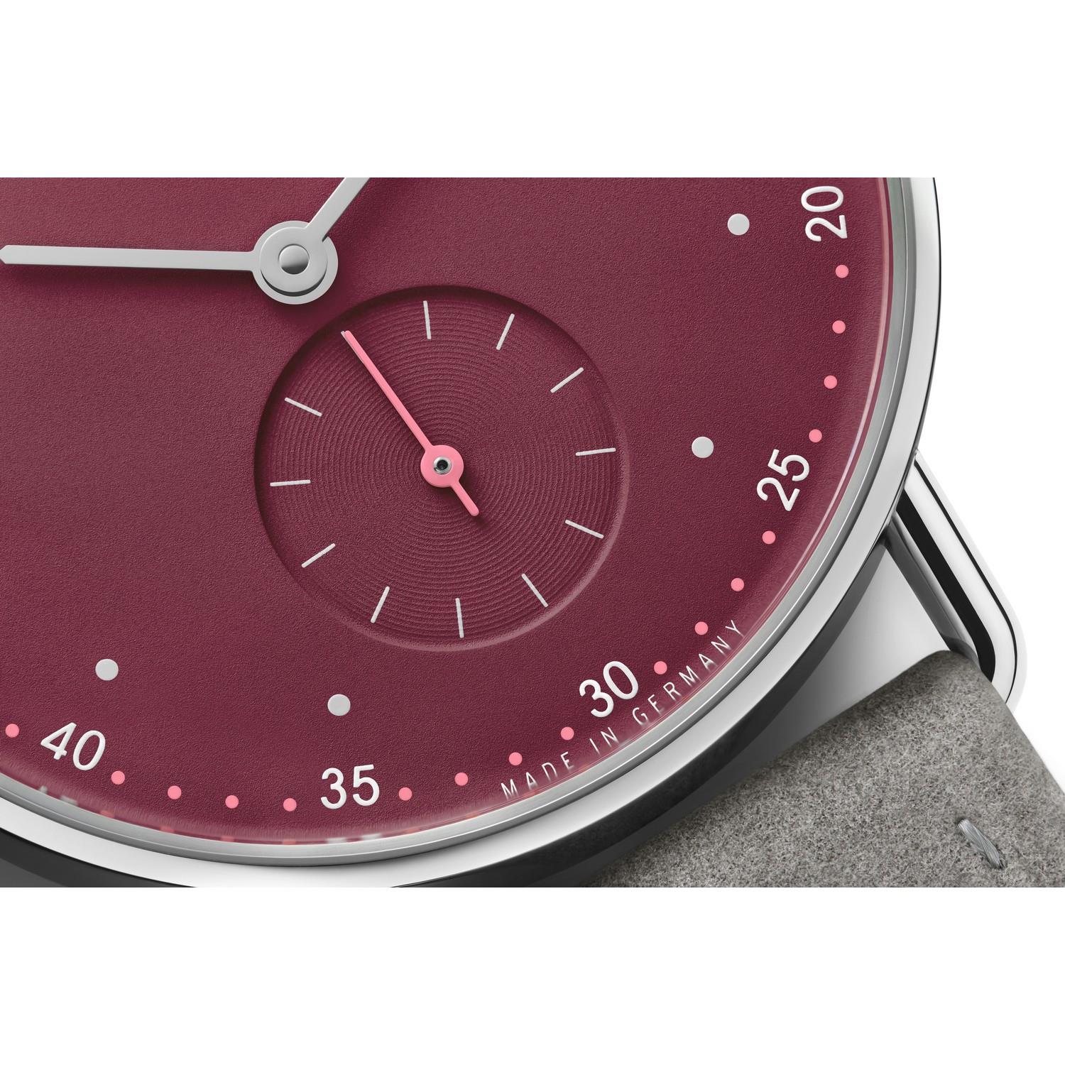 Das jüngste Familienmitglied ist ein ganz besonderes: Modell Metro mit einem Gehäuse aus Roségold und einem Durchmesser von 33 Millimetern. Der Berliner Designer Mark Braun zeichnet auch für diese besonders feminine Metro-Version verantwortlich. Im Innern bestimmt Handaufzugskaliber Alpha den Takt: gewohnt zuverlässig, gewohnt präzise.