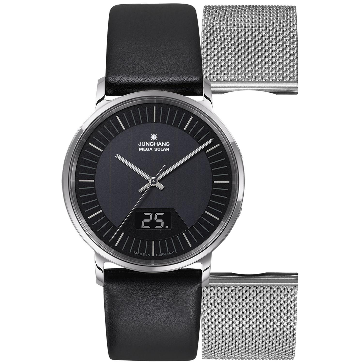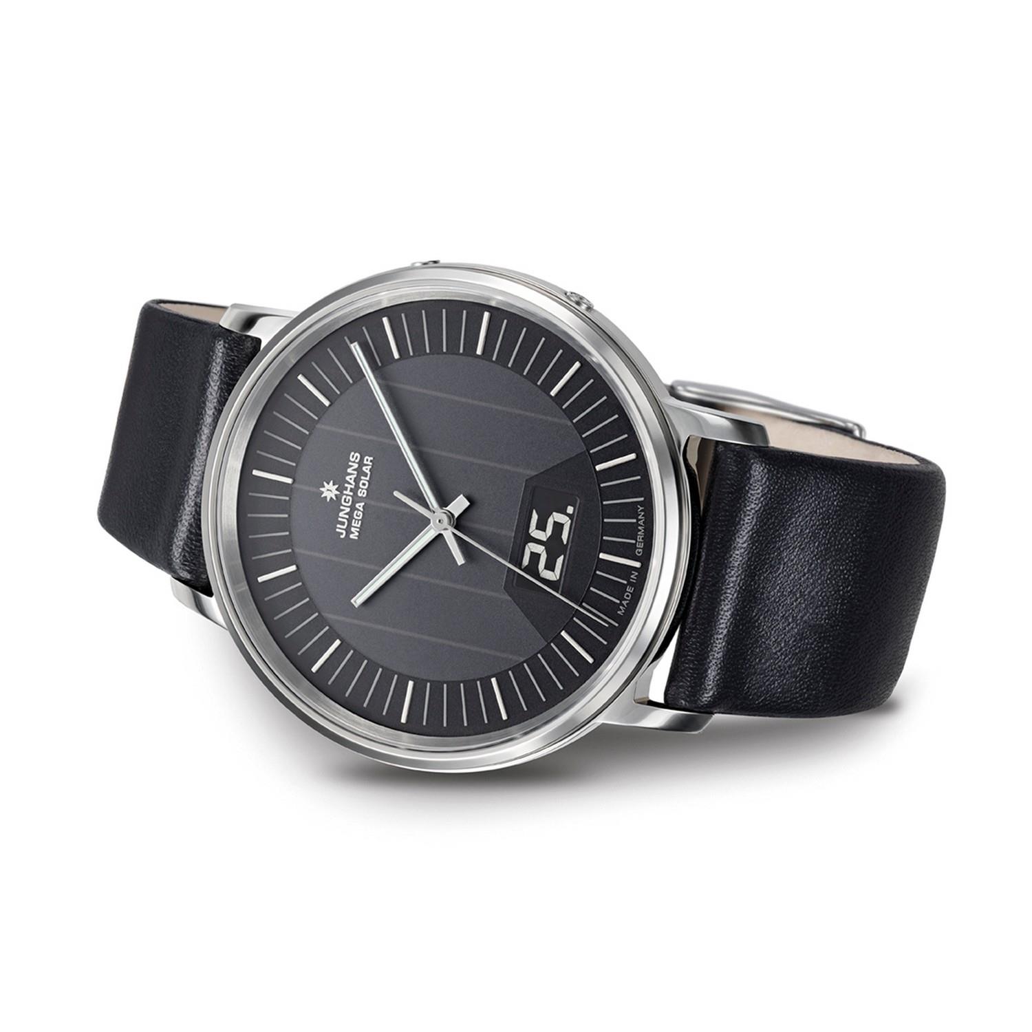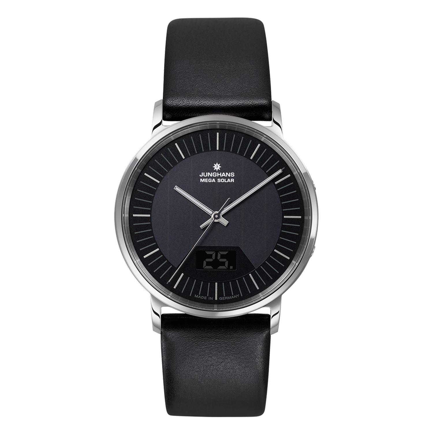 Funk und Solarantrieb: In beiden Technologien hat Junghans Pionierarbeit geleistet. So bietet die Milano Mega Solar modernstes technisches Innenleben in aktuellem Äußeren. Die Glassolarzifferblätter werden während des Fertigungsprozesses in unserer Schleiferei und Druckerei in zahlreichen Arbeitsschritten bearbeitet. Die Einstellung ist auch per Junghans MEGA App möglich.