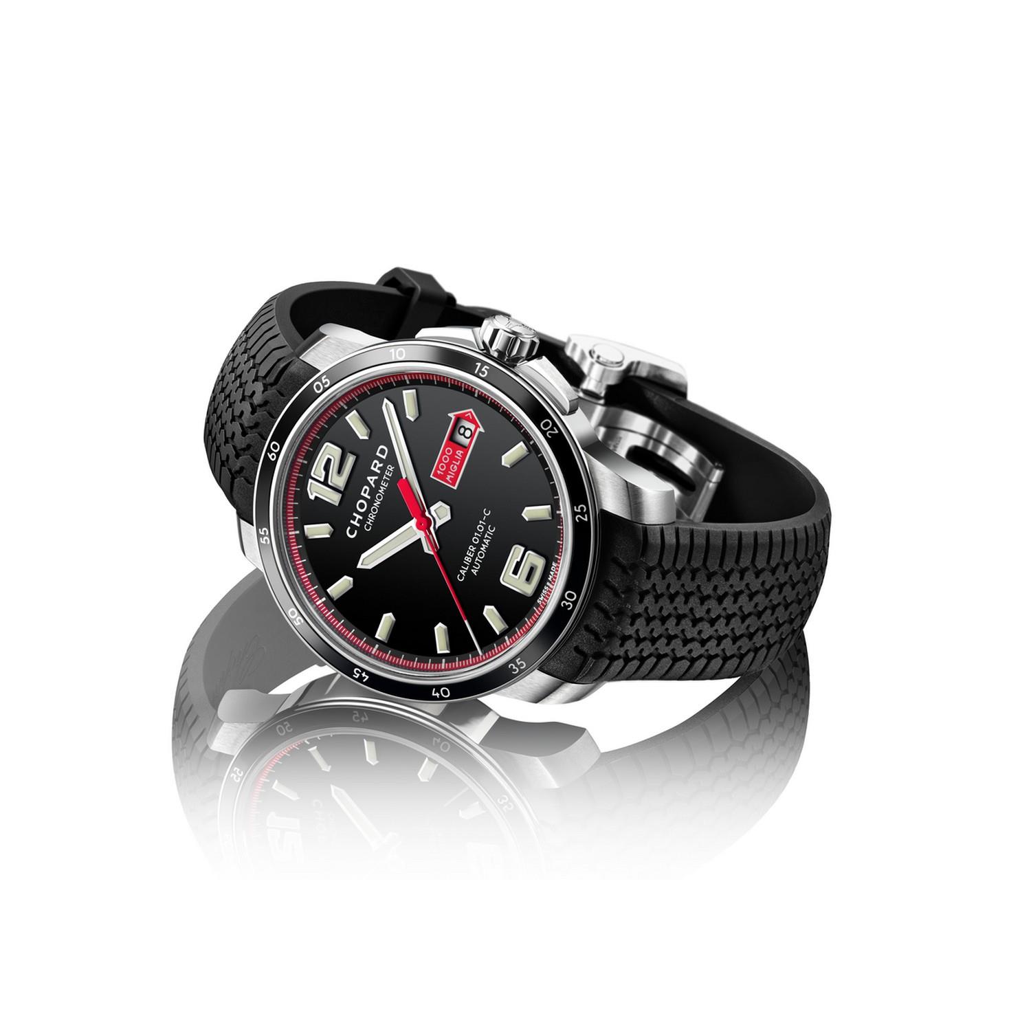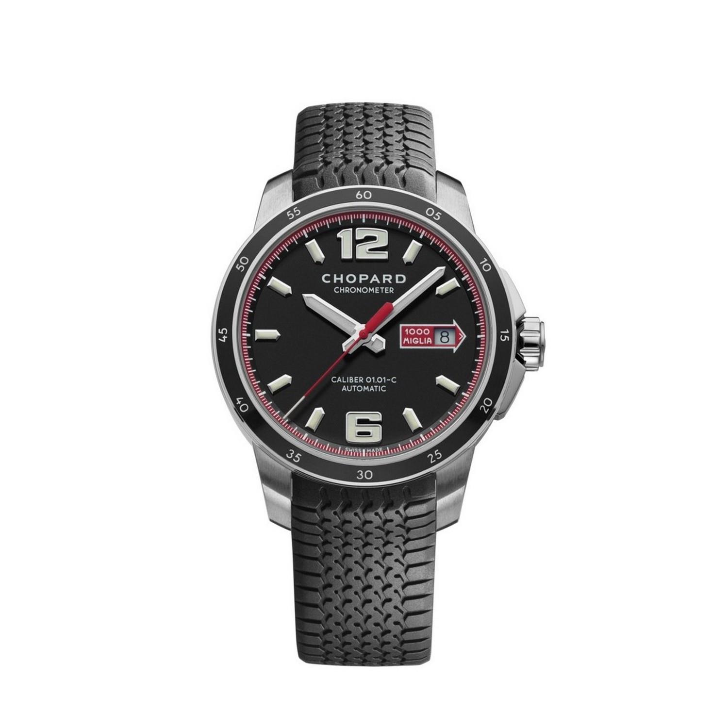 Mit ihrem markanten Vintage-Stil erinnert die Mille Miglia GTS Automatic an das klassische Design der legendären Mille Miglia Rennwagen. Auf dem mattschwarzen Zifferblatt dieses markanten Zeitmessers aus Edelstahl mit seinen reinen, schlichten Linien hebt sich der rote Sekundenzeiger kontrastreich ab. Das emblematische Kautschukarmband ist an das Dunlop-Reifenprofil der 1960er Jahre angelehnt und passt sich perfekt dem Handgelenk an. Das hauseigene Uhrwerk mit Automatikaufzug und Chronometerzertifikat tickt mit höchster Präzision und ist ein Beweis für das grosse uhrmacherische Know-how von Chopard.
