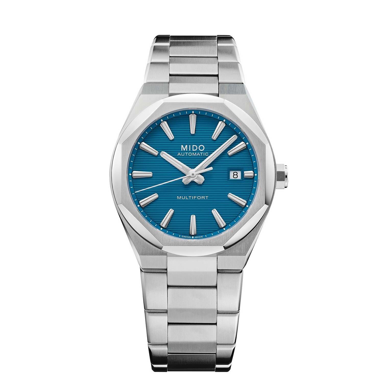 Mit ihren klaren Linien, dem ausgewogenen 40-mm-Gehäuse und der markanten achteckigen Lünette präsentiert sich die Multifort 8 One Crown in einem kühnen und modernen Design. Ihr mit horizontalen Rillen strukturiertes Zifferblatt spielt mit Rhythmus und Tiefe, während Super-LumiNova® für perfekte Ablesbarkeit sorgt. Ein beidseitig entspiegeltes Saphirglas schützt das Zifferblatt, das von einem satinierten Stahlgehäuse mit polierten Kanten veredelt wird. Angetrieben vom Kaliber 80 – einem Schweizer Automatikwerk mit verlängerter Gangreserve, das durch den transparenten Gehäuseboden sichtbar ist – spiegelt dieser Zeitmesser die Vision der TECHNOMETRY von MIDO wider: eine harmonische Verschmelzung von Technologie und Geometrie. Die Multifort 8 One Crown ist eine robuste, präzise und elegante Uhr für alle, die Spitzenleistungen mit Charakter verlangen.
