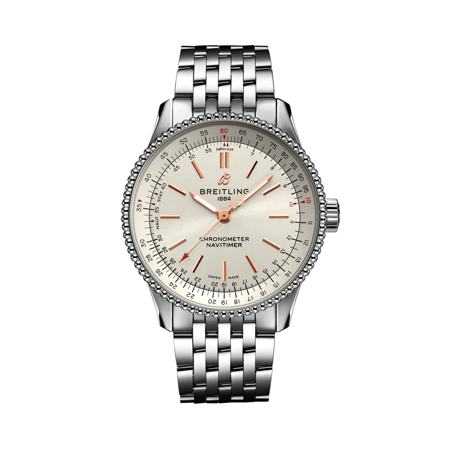 Breitlings Ikone – für die Reise. Die Navitimer ist eine der bekanntesten Uhren, die je hergestellt wurden. Sie steht als eine der grossartigsten Uhren aller Zeiten auf den Sammlerlisten. Was 1952 als Instrument für Piloten begann, hat inzwischen eine tiefe Bedeutung für jeden, den dieser Zeitmesser auf seiner persönlichen Reise begleitet. Unsere Ikone kommt jetzt in den Grössen 36 und 32 mm für Frauen und Männer, die die Optik und Haptik einer Uhr mit kleinerem Durchmesser lieben. Während die 36-mm-Navitimer die Perlenlünette und den ikonischen kreisförmigen Rechenschieber aufweist, die der Navitimer ihr unverkennbares Aussehen verleihen, verzichtet die beeindruckende 32-mm-Variante auf den Rechenschieber zugunsten eines schlichteren Zifferblattdesigns, das auf den schlanken Durchmesser abgestimmt ist. Doch diese Blickfänger haben so viel mehr zu bieten als nur ihre schlanke neue Grösse. Pastelltöne, Perlmutt und rückverfolgbare Rohstoffe verbinden sich mit dezenten Feinheiten, um den Zeitmessern einen schmuckähnlichen Charakter zu verleihen – zusätzliche vielseitige Eleganz für die legendäre Navigationsuhr, die bereit für all Ihre Reisen ist.