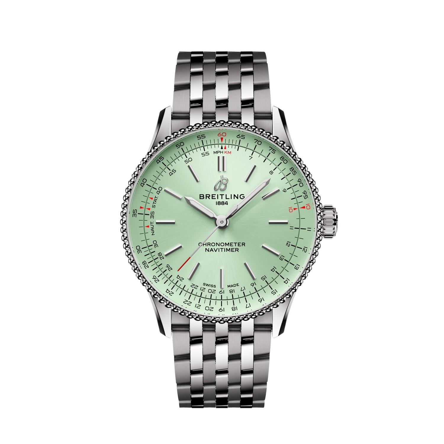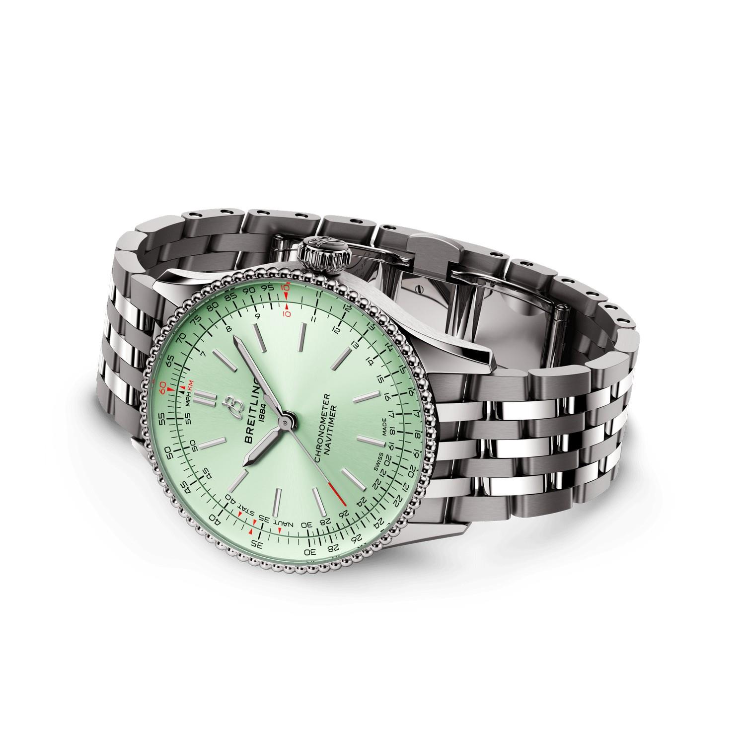Breitlings Ikone – für die Reise. Die Navitimer ist eine der bekanntesten Uhren, die je hergestellt wurden. Sie steht als eine der grossartigsten Uhren aller Zeiten auf den Sammlerlisten. Was 1952 als Instrument für Piloten begann, hat inzwischen eine tiefe Bedeutung für jeden, den dieser Zeitmesser auf seiner persönlichen Reise begleitet. Unsere Ikone kommt jetzt in den Grössen 36 und 32 mm für Frauen und Männer, die die Optik und Haptik einer Uhr mit kleinerem Durchmesser lieben. Während die 36-mm-Navitimer die Perlenlünette und den ikonischen kreisförmigen Rechenschieber aufweist, die der Navitimer ihr unverkennbares Aussehen verleihen, verzichtet die beeindruckende 32-mm-Variante auf den Rechenschieber zugunsten eines schlichteren Zifferblattdesigns, das auf den schlanken Durchmesser abgestimmt ist. Doch diese Blickfänger haben so viel mehr zu bieten als nur ihre schlanke neue Grösse. Pastelltöne, Perlmutt und rückverfolgbare Rohstoffe verbinden sich mit dezenten Feinheiten, um den Zeitmessern einen schmuckähnlichen Charakter zu verleihen – zusätzliche vielseitige Eleganz für die legendäre Navigationsuhr, die bereit für all Ihre Reisen ist.
