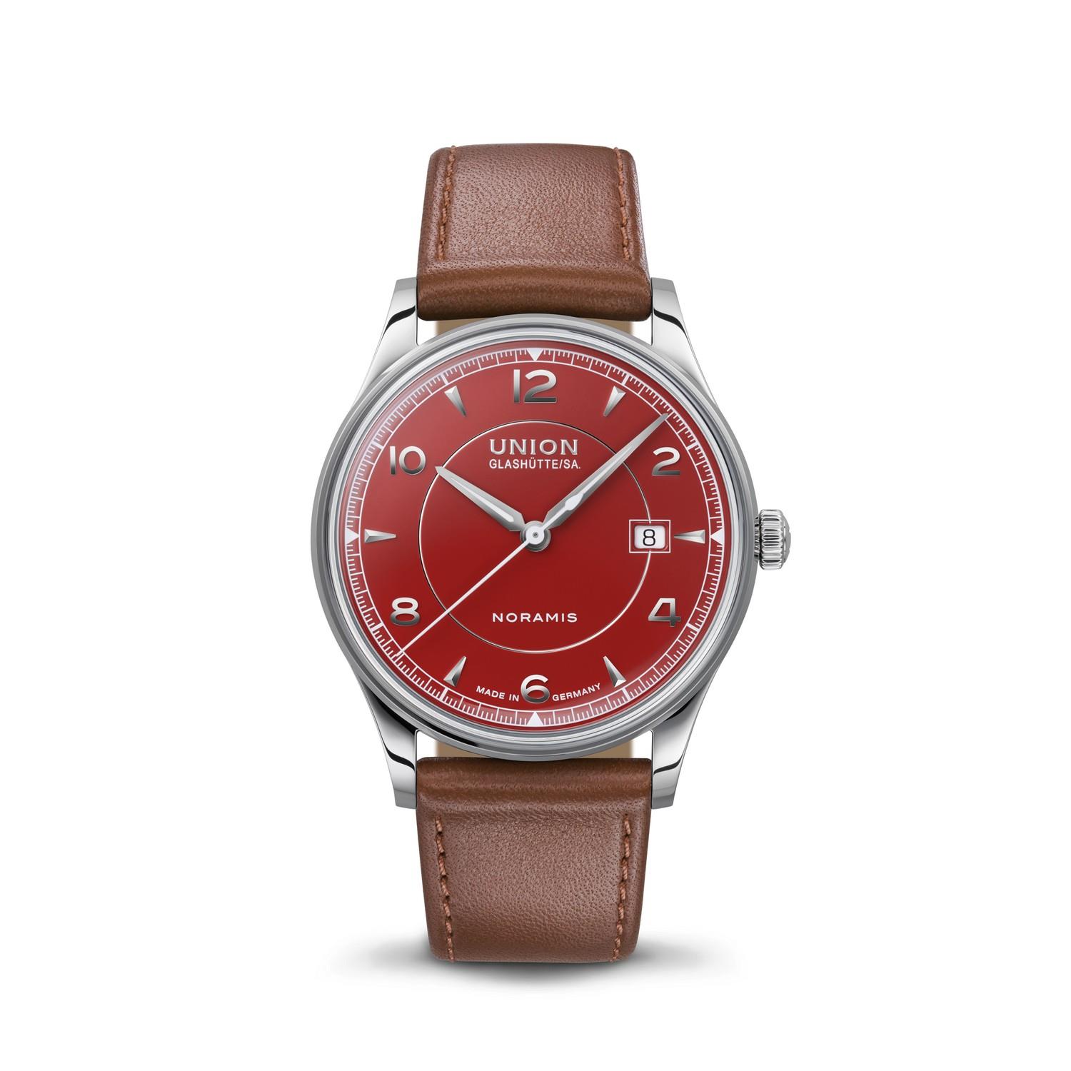 Die Noramis Datum bietet mit einem extrem gewölbten, beidseitig entspiegelten Saphirglas beste Sicht aufs Zifferblatt und kommt ganz ohne Lünette aus. Ihr rundes Edelstahlgehäuse mit einem Durchmesser von 40 Millimetern macht sowohl an Damen- als auch Herrenhandgelenken eine gute Figur. Ein fein gewebtes Milanaiseband aus Edelstahl mit doppelter Faltschließe rundet den Retro-Look perfekt ab.