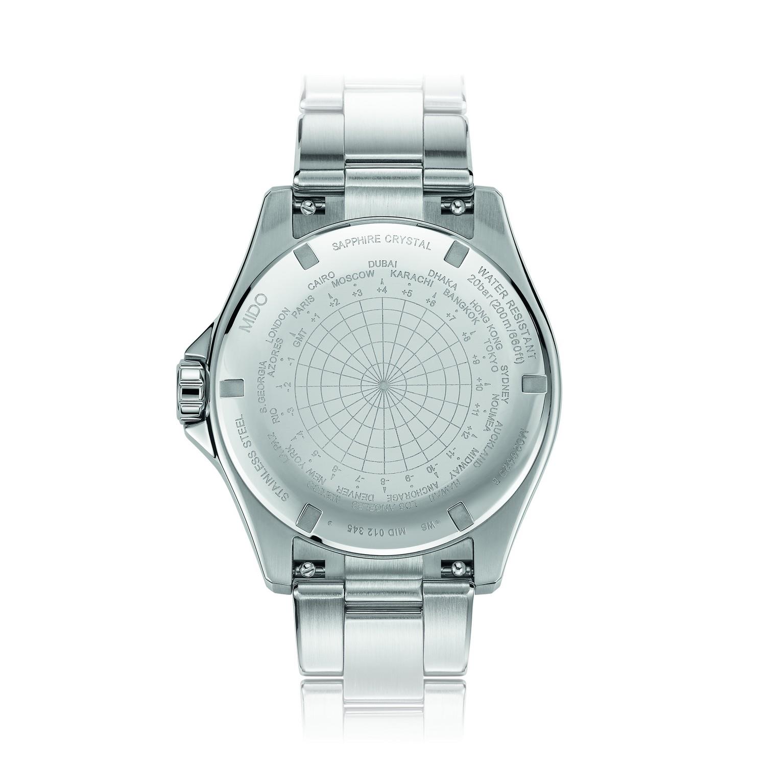MIDO bereichert seine Taucheruhrenkollektion Ocean Star um eine Version, die mit der äußerst praktischen GMT-Funktion ausgestattet ist. Es zeigt deutlich die Zeit in zwei verschiedenen Zeitzonen an: Heimatzeit und Ortszeit. Auf der Rückseite der sportlichen Schweizer Uhr – ausgestattet mit dem Automatikwerk Kaliber 80, das eine Gangreserve von bis zu 80 Stunden bietet – hat MIDO die Zeitzonenangaben eingraviert. Die extrem einfach zu bedienende GMT-Funktion bietet doppelt so viel Freiheit für diejenigen, die entweder am Meer oder auf einem adrenalingeladenen Abenteuer sind.