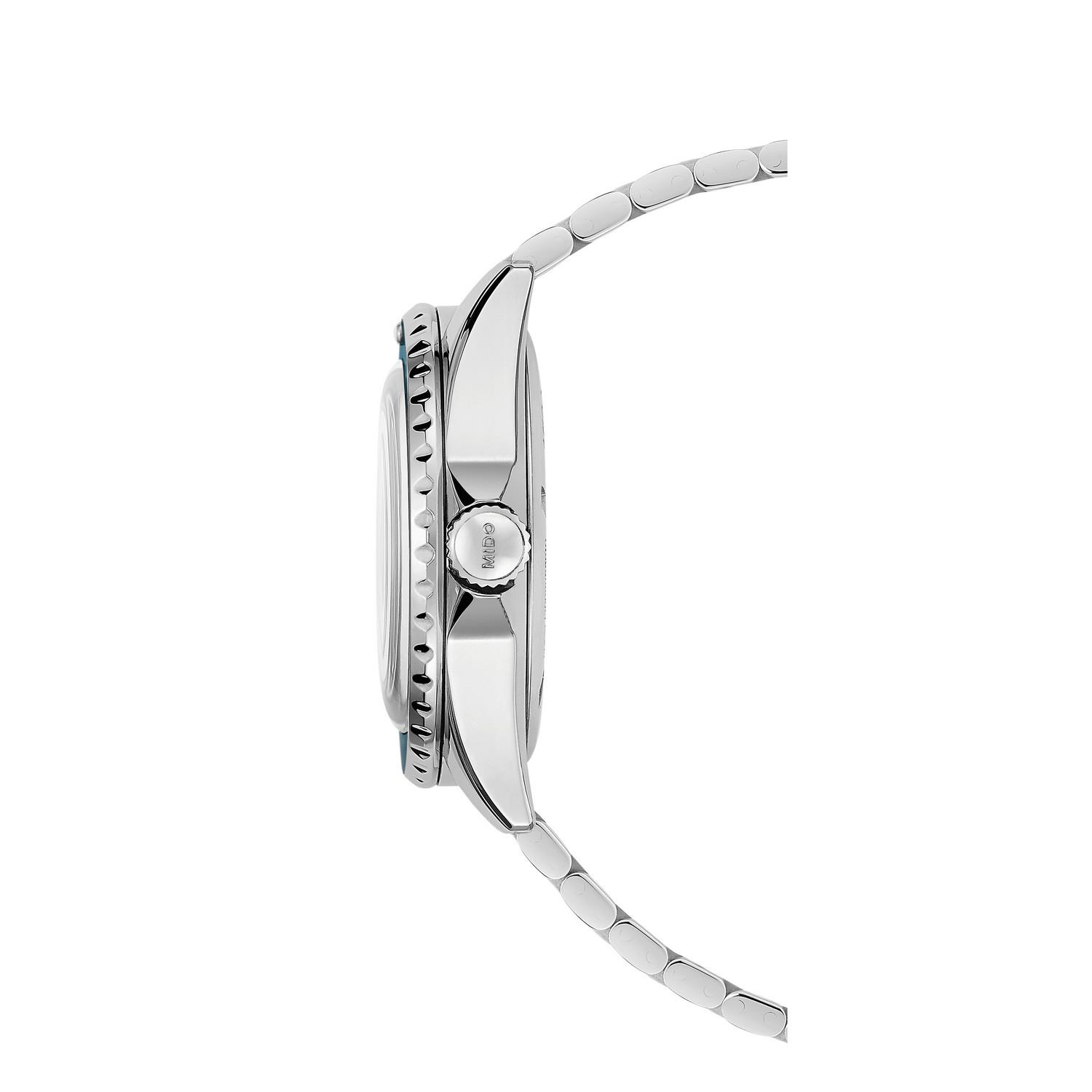 Mido würdigt die Kollektion Ocean Star anlässlich ihres 75-jährigen Jubiläums. In Anspielung auf die Vergangenheit bietet die Ocean Star Tribute eine Neuinterpretation der ästhetischen Charakteristika der Taucheruhren aus den 1960er-Jahren. Sie kombiniert alle Attribute miteinander: Sie ist mit dem Automatikwerk Kaliber 80 ausgestattet, das bis zu einem Druck von 20 bar (200 m) wasserdicht ist, und ihr einzigartiges Armband bietet einen vollkommenen Tragekomfort.