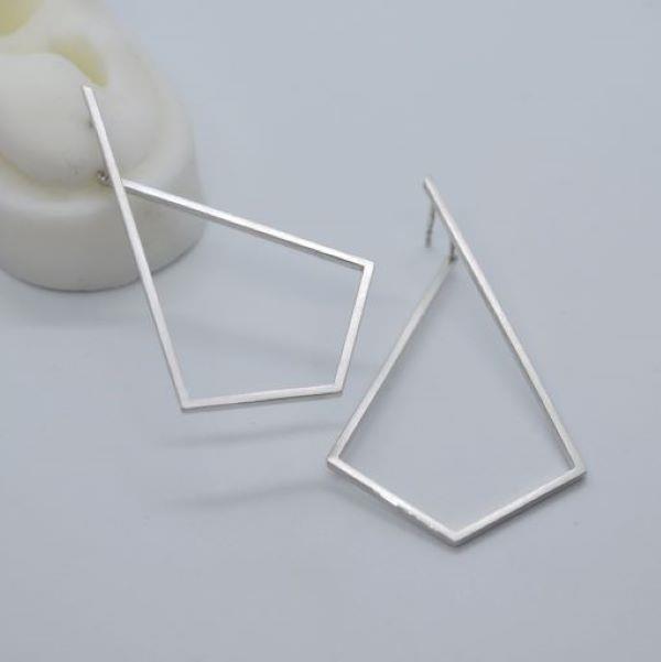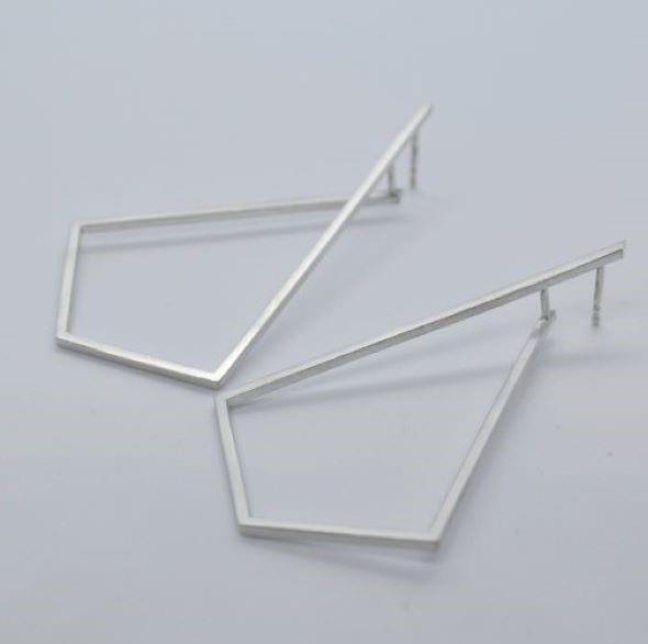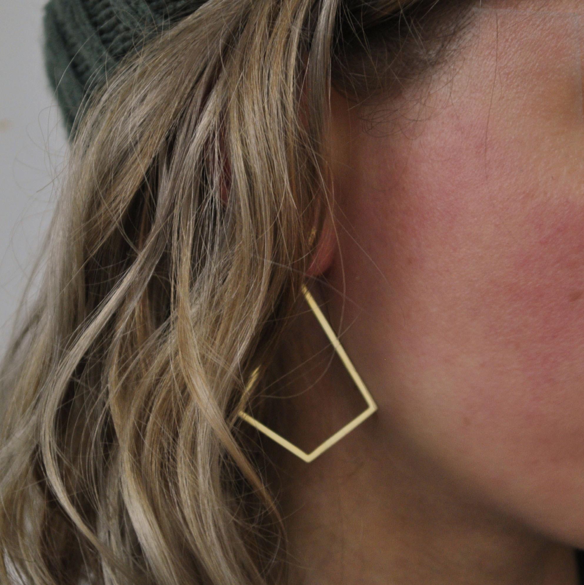 Diese Drachenrauten sind ein Statement. Groß, aber wunderbar luftig machen die Ohrringe “Aufgestiegen” ihrem Namen alle Ehre. Durch die versetzte Oberseite schmiegen sie sich scheinbar schwerelos ans Ohr.