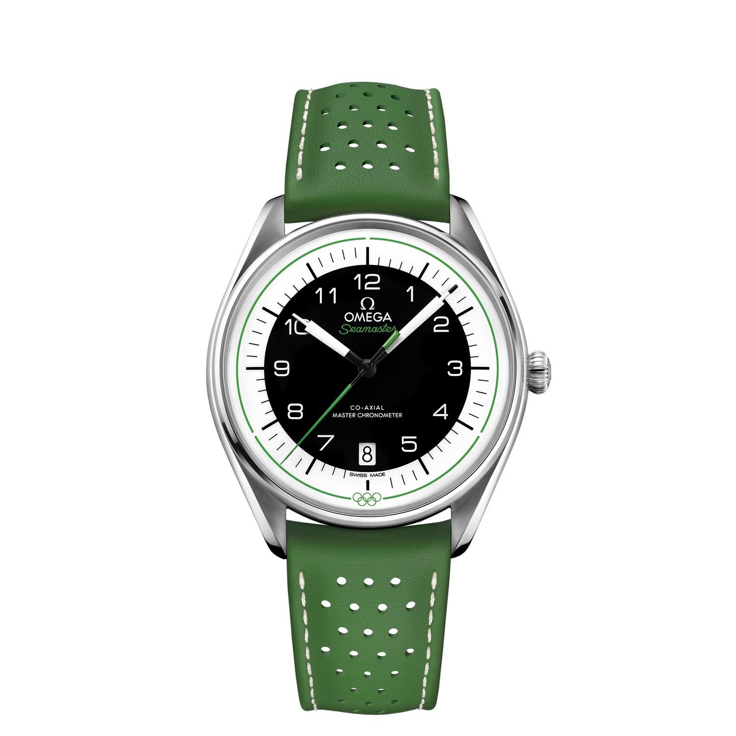 Auf dem Gehäuseboden befindet sich ein grüner eloxierter Aluminiumring, auf dem alle Austragungsorte und Termine der Olympischen Spiele mit Beteiligung von OMEGA verewigt wurden, von Los Angeles 1932 bis Los Angeles 2028.