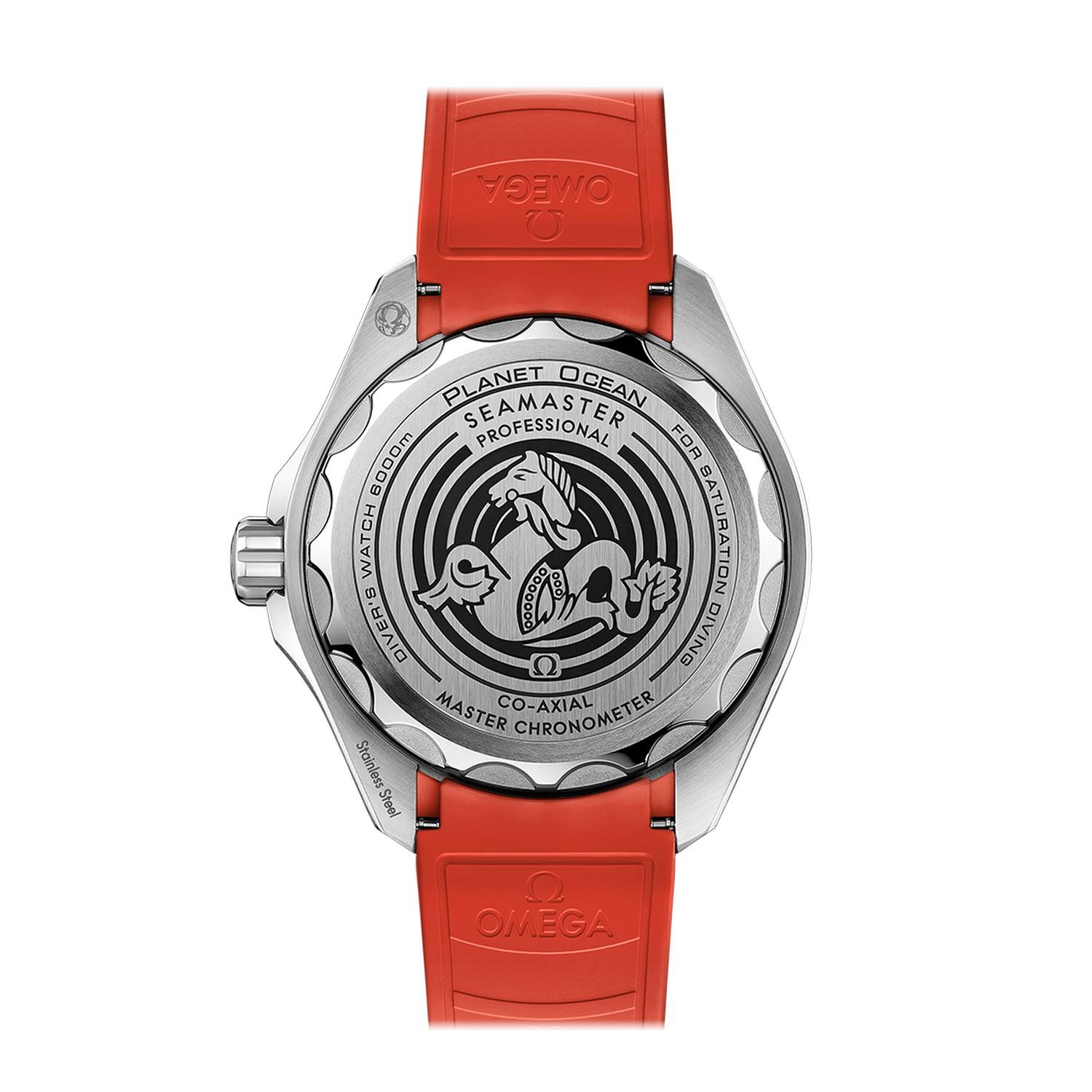 Die Uhr wird von einem Kautschukarmband mit orangefarbener Unterfütterung und O-MEGASTEEL Schließe am Handgelenk gehalten, während das Medaillon aus Titan Grade 5 auf dem Gehäuseboden per Laser mit einem Sonar-Symbol und dem ikonischen OMEGA Seepferdchen in der Mitte graviert wurde. Angetrieben wird die Uhr von dem OMEGA Co-Axial Master Chronometer Kaliber 8912.
