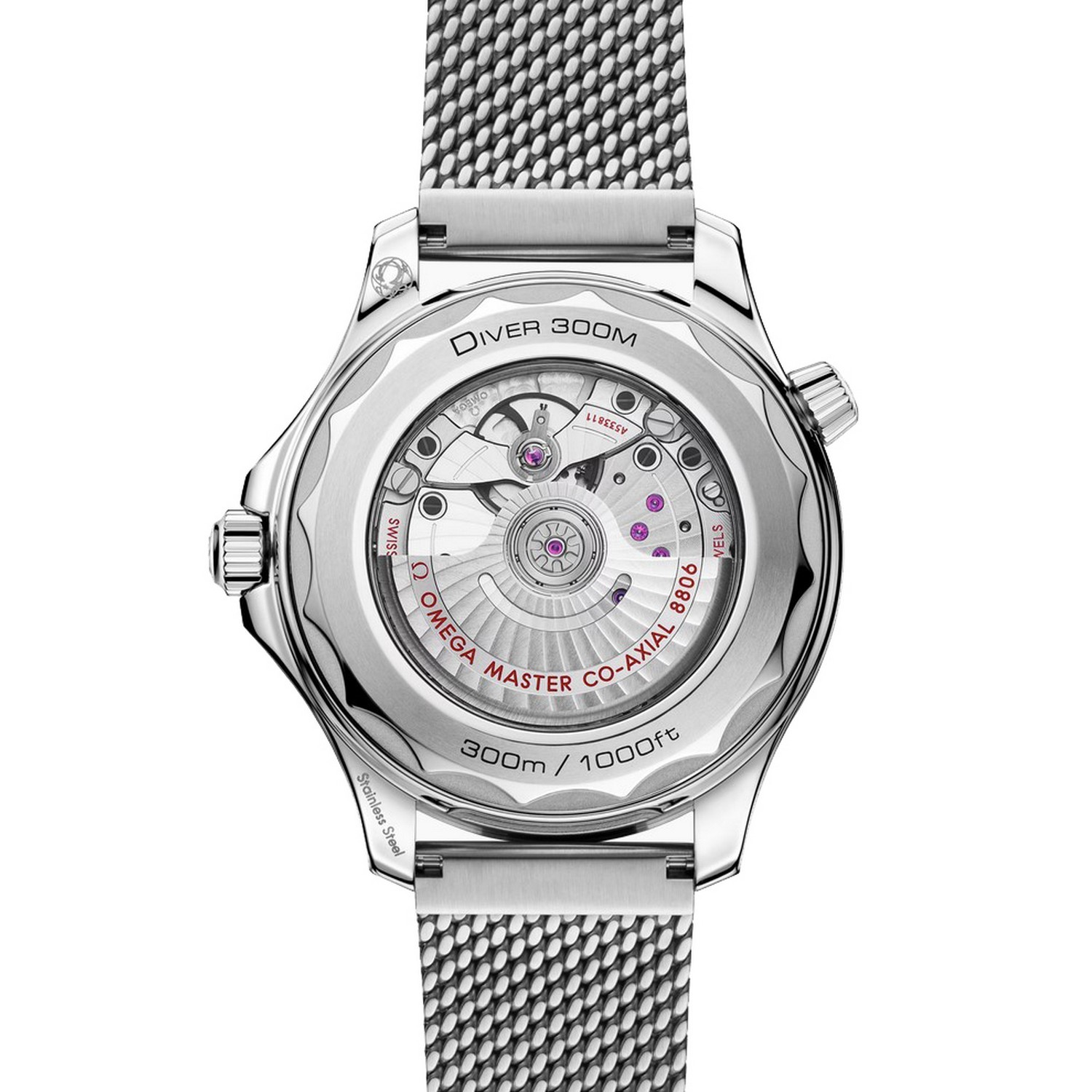 Am Handgelenk gehalten wird die Uhr von einem gebürsteten Milanaise-Armband mit Schließe, für den Antrieb sorgt das OMEGA Co-Axial Master Chronometer Kaliber 8806, das durch den Saphirglasboden bewundert werden kann.
