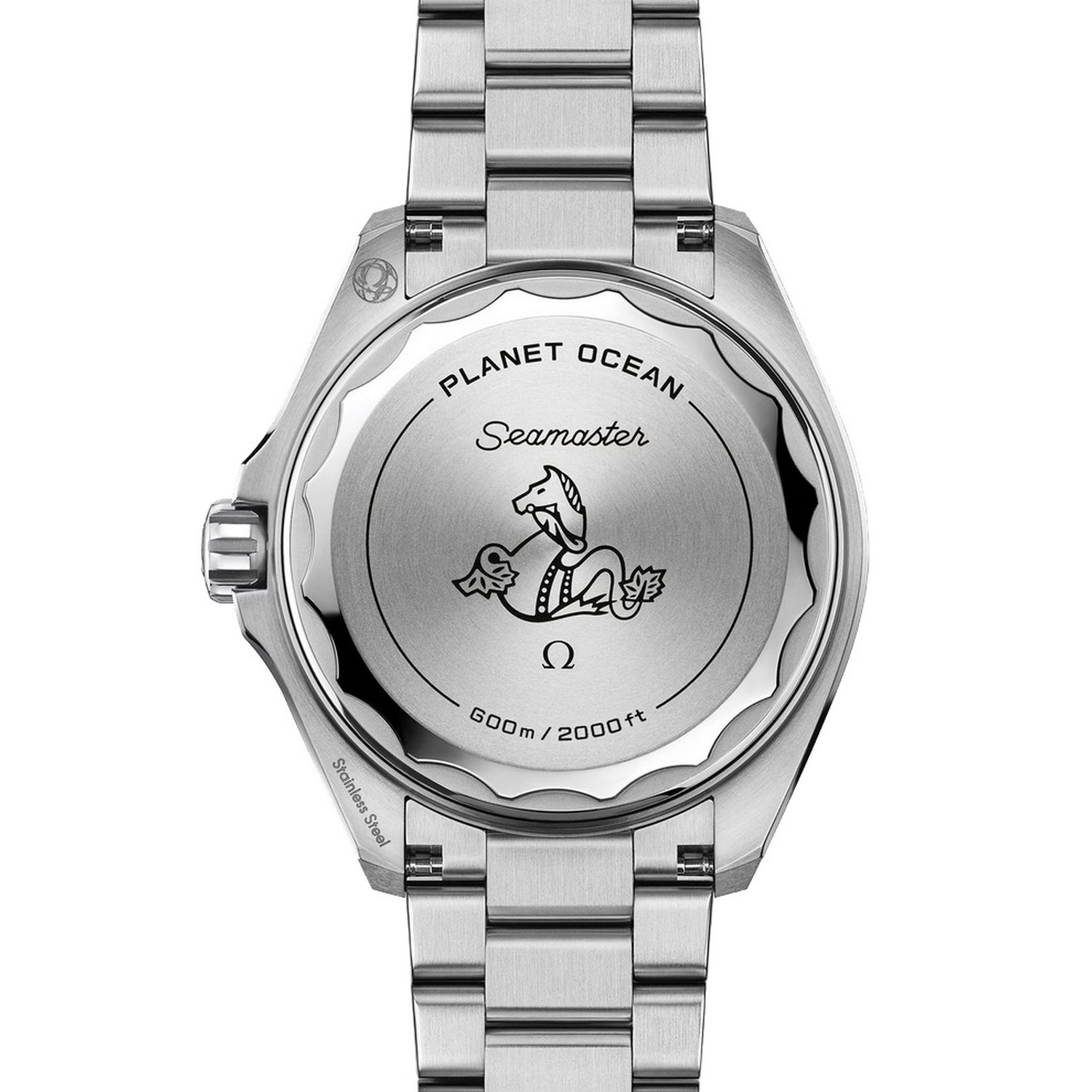 Diese Seamaster Planet Ocean wird vom Co-Axial Master Chronometer Kaliber 8912 angetrieben und mit einem Armband aus poliertem und gebürstetem Edelstahl kombiniert, das über eine verlängerbare Push-Faltschließe mit zusätzlicher Tauchverlängerung verfügt. Der verschraubte Gehäuseboden auf der Rückseite der Uhr ist aus poliertem Titan Grad 5 gefertigt und mit dem berühmten OMEGA Seepferdchen-Emblem verziert.