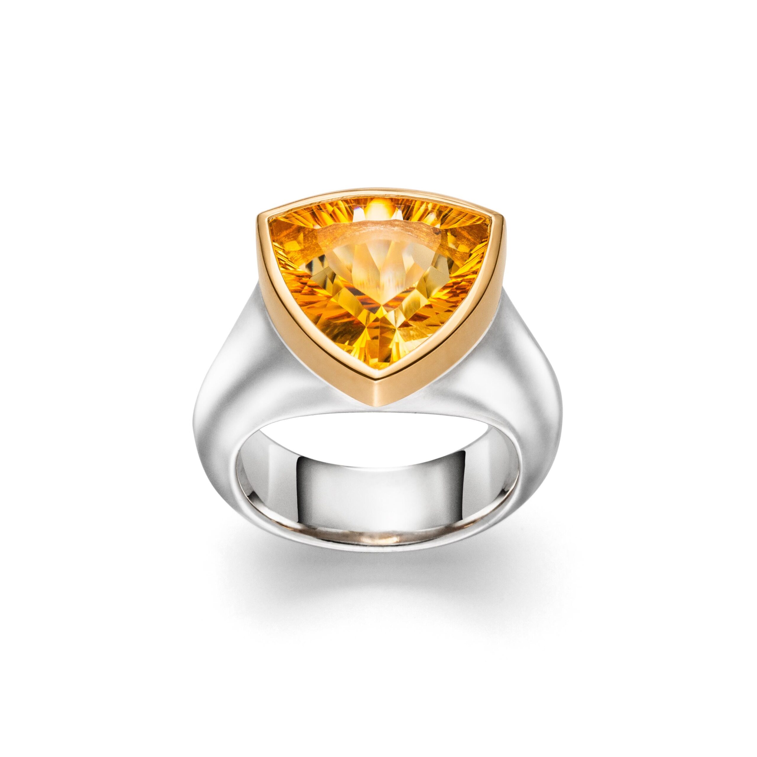 KÜHLES SILBER KOMBINIERT MIT FEINEM GELBGOLD UND EINEM GROSSEN CITRIN IM TRILLANTSCHLIFF