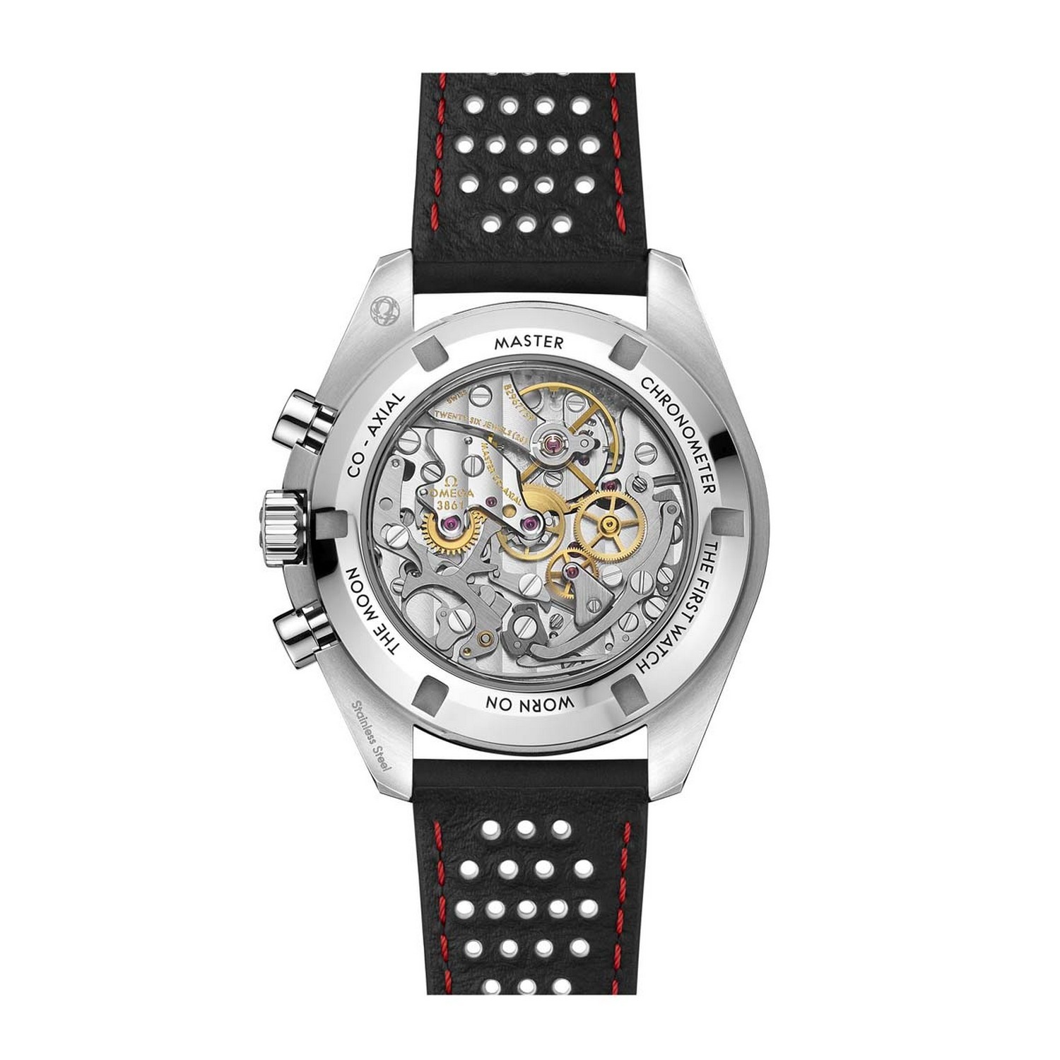 Angetrieben wird die Uhr von dem OMEGA Co-Axial Master Chronometer Kaliber 3861, das neben der zentralen Chronographenfunktion über eine kleine Sekunde, einen 30-Minuten-Zähler und einen 12-Stunden-Zähler verfügt.