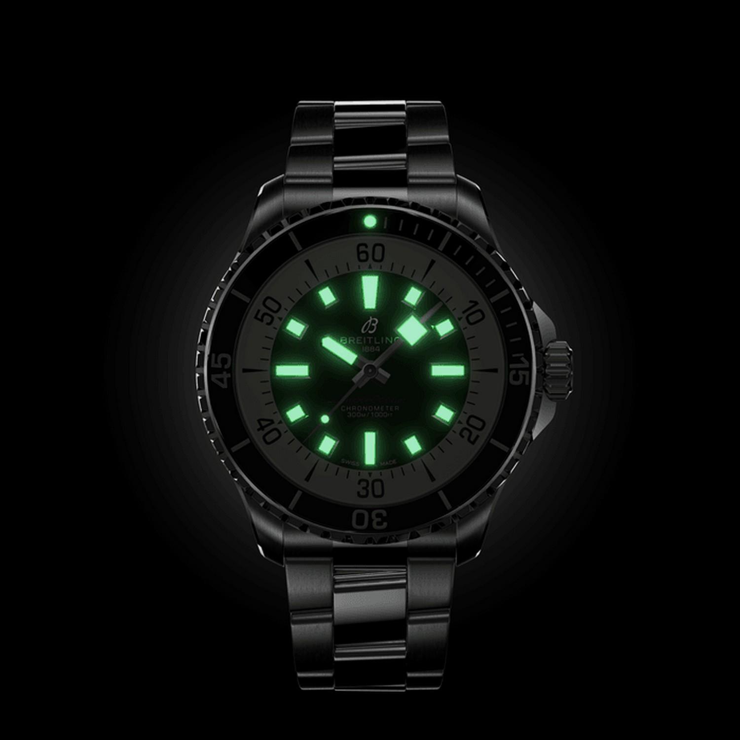 Leistung und Stil für alle Ihre Wassersport-Aktivitäten. In den 1960er-Jahren kam der neuartige Tauchsport gross in Mode. Für Taucher war Timing alles, und Breitling machte sich daran, eine möglichst schnörkellose Taucheruhr für sie zu entwickeln, bei der auf jede Funktion verzichtet wurde, die nicht auf ihre lebensrettenden Ansprüche unter Wasser abgestimmt war. Diese reduzierte Uhr erhielt den Namen Slow Motion. Was blieb, waren klare Linien, massive Leuchtzeiger, eckige Indizes und ein kontrastreicher Zifferblattring, um maximale Ablesbarkeit zu garantieren. Praktisch war sie in jedem Fall. Aber was die Leute wirklich begeisterte, war ihr Look. Die neue Superocean nimmt die gefeierten Designelemente der Slow Motion wieder auf und ergänzt sie mit modernen Funktionen wie einer Keramikinlay-Lünette und Zifferblättern in leuchtenden Farben. Breite Zeiger und Indizes in lumineszierendem Super-LumiNova® sorgen für eine einfache Ablesbarkeit unter Wasser. Die Uhr ist wasserdicht bis 300 Meter (1000 Fuss), stossfest sowie sand- und salzwasserbeständig. Bei der Version in Bronze kommt eine spezielle Legierung zum Einsatz, die eine exzellente Korrosionsbeständigkeit aufweist, aber mit der Zeit eine dezente Patina entwickelt, durch die die Uhr noch einzigartiger wird. Die beiden Armband-Optionen (Gummi- oder Metallarmband) verfügen über eine Faltschliesse, mit der kleinste Anpassungen bis zu 15 mm möglich sind, so dass die Uhr ganz einfach über Rashguards und Neoprenanzügen getragen werden kann. Die kratzfeste Keramikinlay-Lünette wird niemals abnutzen oder verblassen. Zur Sicherheit ist die Lünette bei den meisten Grössen einseitig drehbar und bei 46 mm beidseitig drehbar mit patentierter Verriegelung. Das Allerbeste: Dies ist nicht länger eine reine Taucheruhr – surfen Sie mit ihr, schwimmen Sie mit ihr, besuchen Sie die Strandbar mit ihr und tragen Sie sie dann zum Dinner. Die Superocean ist die perfekte Balance zwischen nostalgischem Vermächtnis und einem frischen, neuen Look.
