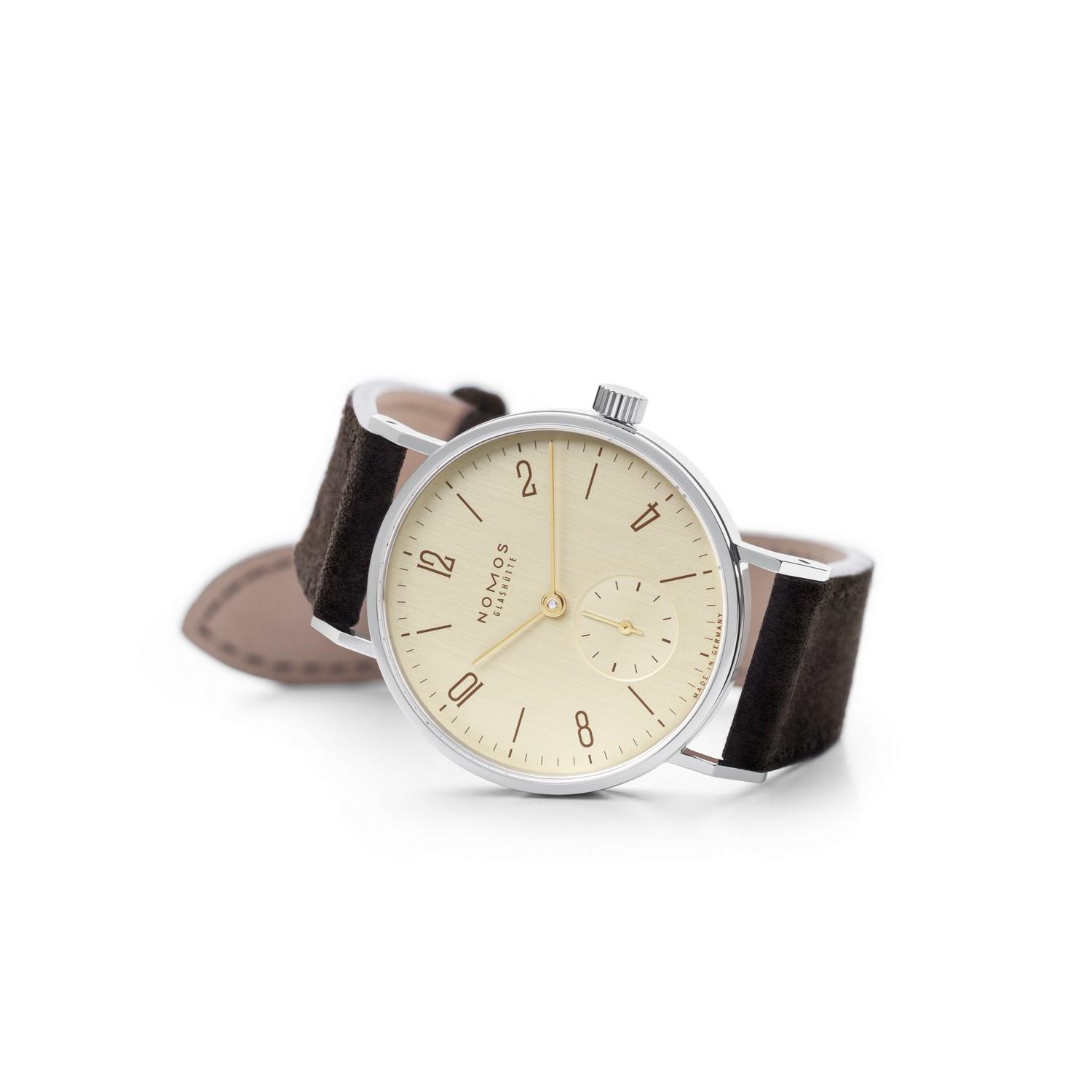 Goldene Zeiger auf goldgeschliffenem Zifferblatt – Tangente 33 Karat leuchtet still, dafür umso überzeugender. Gefertigt für zartere Handgelenke, wirkt an diesem Modell das dunkle Velourslederband besonders edel. Eine Handaufzugsuhr, die zu Schmuck und jedem Anlass passt – oder einfach nur so zu jedem schönen Moment.