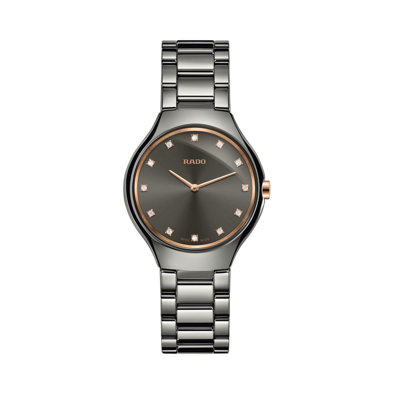 Die True Thinline könnte als der ultimative Rado Zeitmesser betrachtet werden. Die schlanken Quarzuhren fanden 2011 erstmals Eingang in die Kollektion. Sie sind nicht nur die flachsten Zeitmesser von Rado, sondern waren auch die ersten Modelle, die über das bahnbrechende Monobloc-Gehäuse aus Hightech-Keramik verfügen. Leicht, kratzfest und komfortabel zu tragen – und nun auch mit Diamanten zum Funkeln gebracht – überdauern diese Modelle garantiert die Zeit.