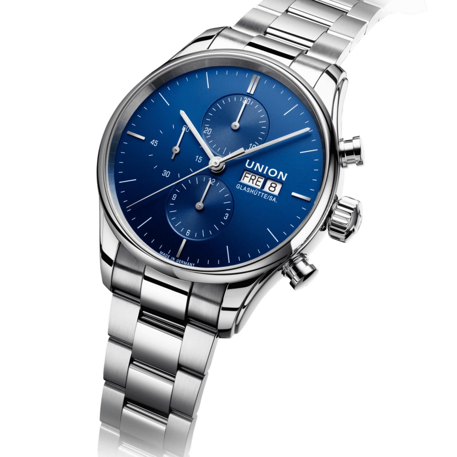 Mit dem ausdrucksstarken Viro Chronographen hat man die Zeit buchstäblich im Griff. Sein rundes Edelstahlgehäuse von 44 mm Durchmesser ist mit leichtgängigen Drückern zum Starten, Stoppen und Zurücksetzen der Kurzzeitmessung versehen. Das beidseitig entspiegelte Saphirglas sorgt für perfekte Ablesbarkeit. Sein sportives Edelstahlband macht diesen Chronographen zum Allrounder, der zu jedem Outfit passt.